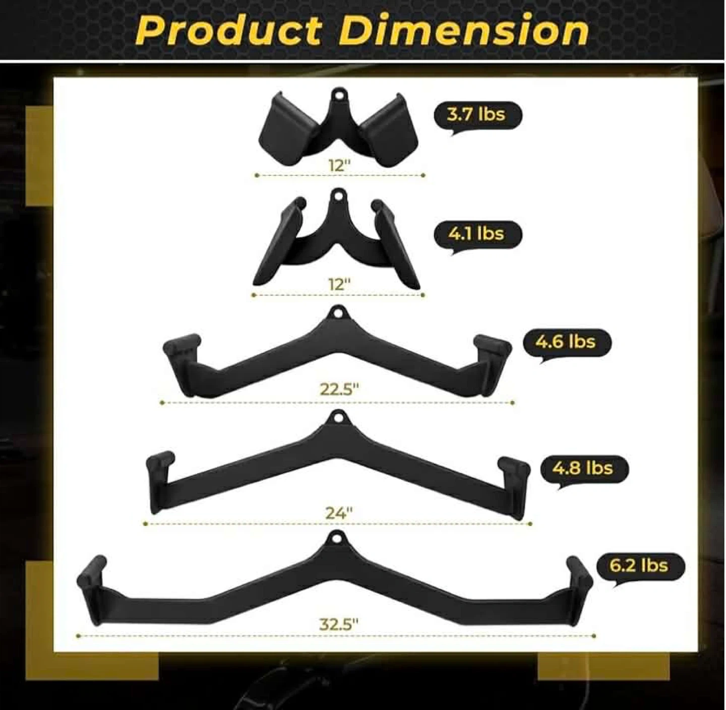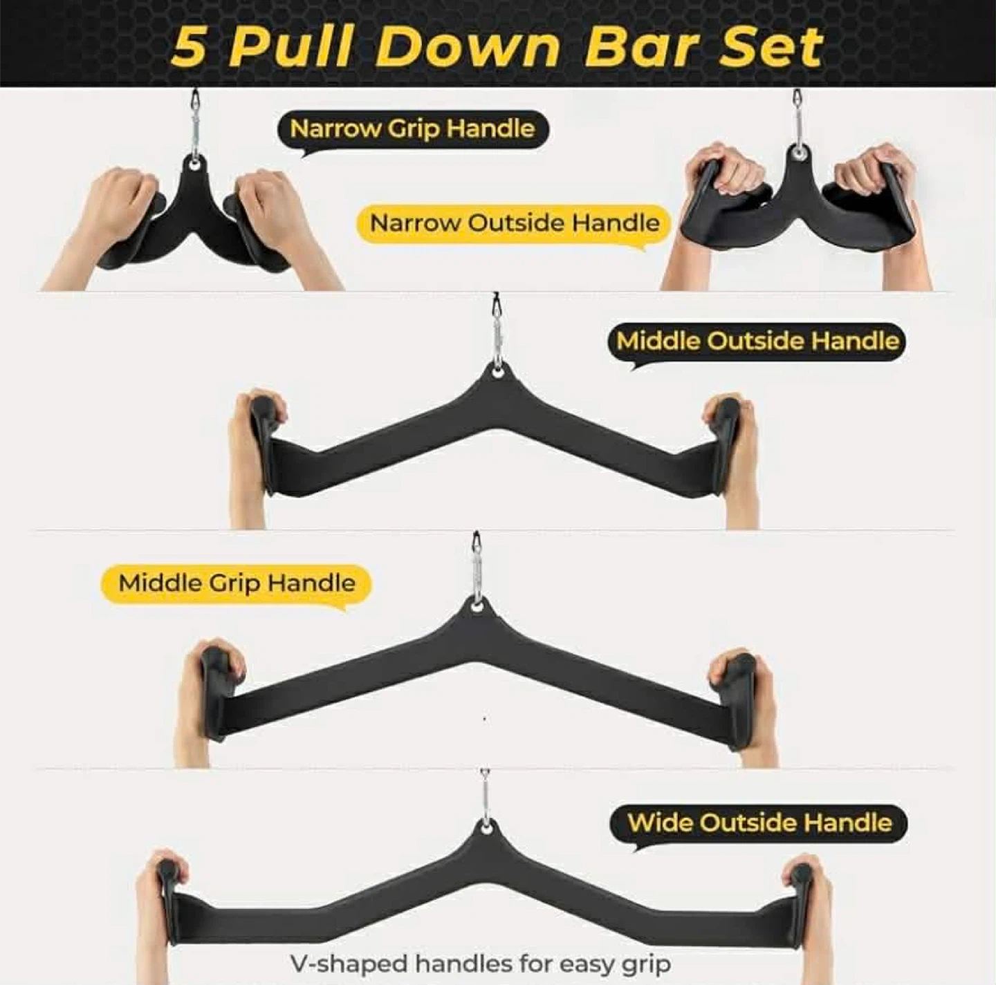 LAT Pulldown Attachments, 5 Pcs Rowing T-bar V-bar Cable Attachm