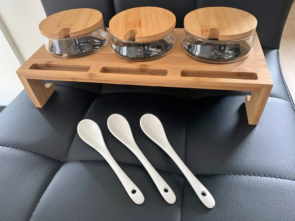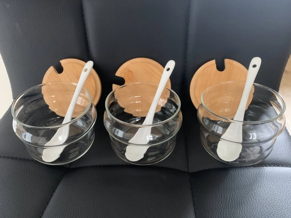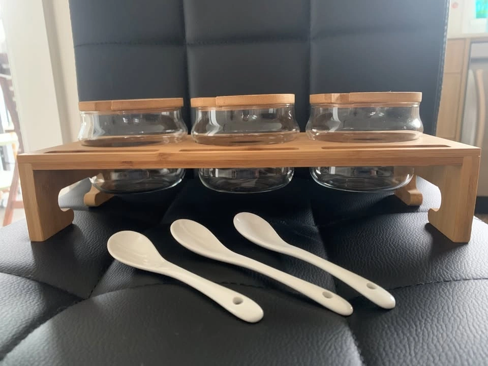 Brand New Serving Set - 3 Glass Containers w/ Lids & Spoons