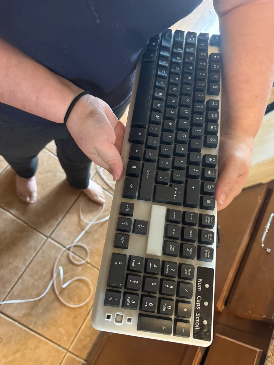 Selling an RGB mechanical keyboard. It has a clear case and black keycaps. The keyboard has RGB lighting that can be customized. It is in good condition and works perfectly. Great for gaming or everyday use!, missing only the enter key