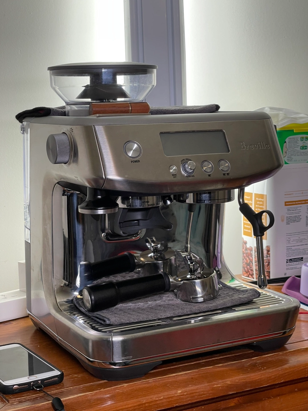 Beloved Breville Barista Pro espresso machine BES878 brushed stainless steel.