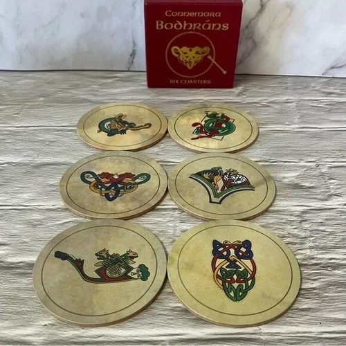 Made in Ireland. In excellent, like-new condition. Cork board backing. 6 different pictures, approx. 3.5" in diameter. Let me know if you're interested!