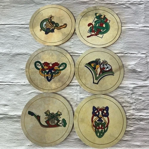 Made in Ireland. In excellent, like-new condition. Cork board backing. 6 different pictures, approx. 3.5" in diameter. Let me know if you're interested!