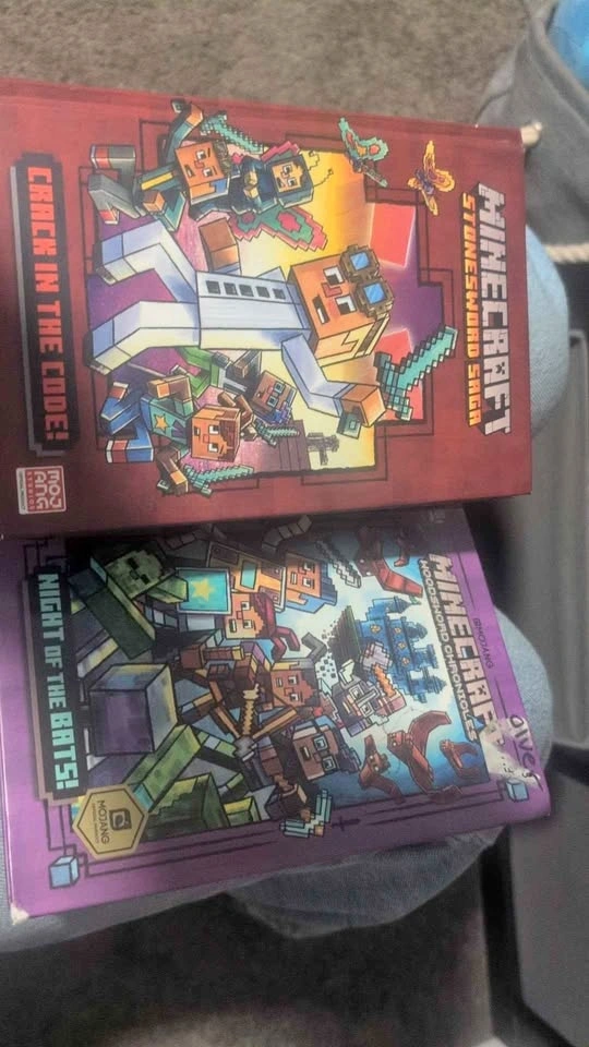 Cool set of two Minecraft books! Got the Stonesword Saga 'Crack in the Code!' and Woodsword Chronicles 'Night of the Bats!' Both hardcover. Great for any Minecraft fan! In great condition. $6 each or both for $10. Pu crystal ridge.