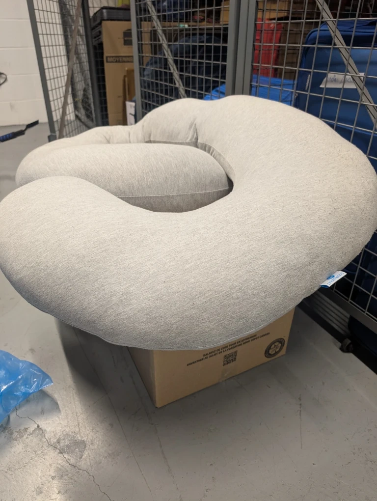 0Selling a C Shaped Pregnancy pillow in a neutral grey colour! It's in great condition and perfect for expecting mothers or anyone who needs extra support while sleeping or relaxing. I had used it for last 5 months of my pregnancy and do not need it anymore. It has a removable cover which is machine washable. I had originally purchased this pillow for CAD 75