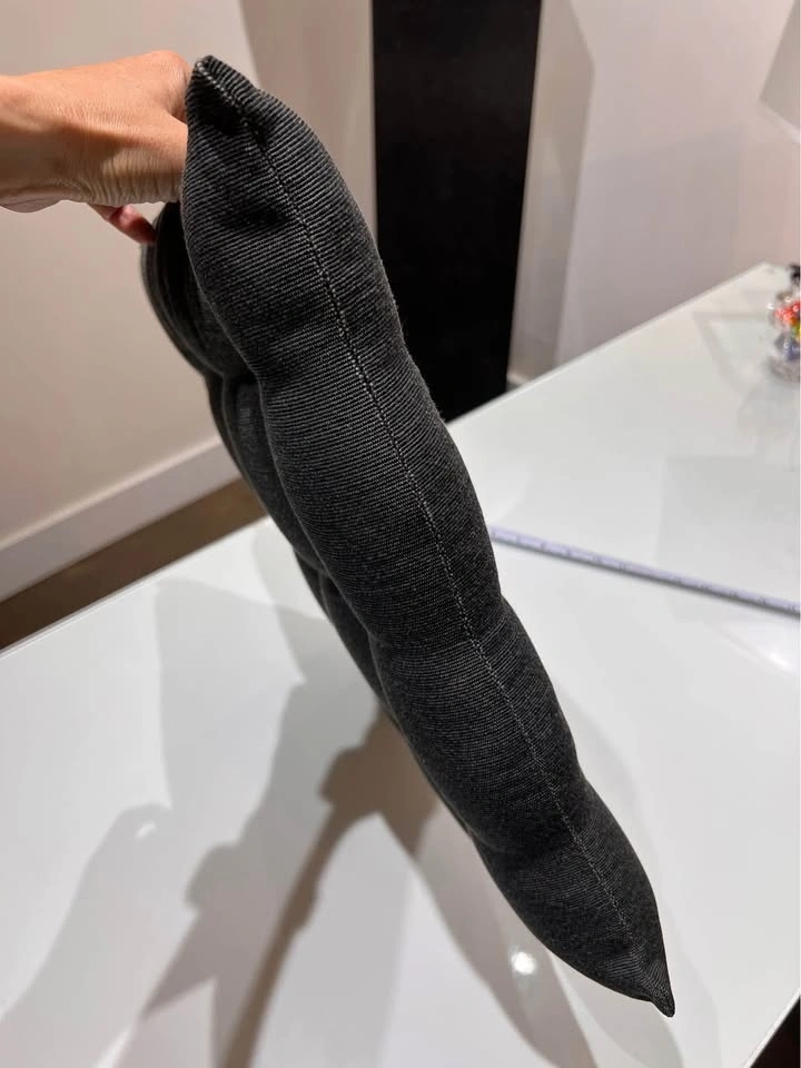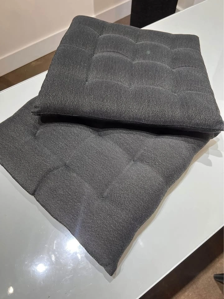 Comfortable and firm patio seat cushions in a dark charcoal (black) stain resistant fabric. 4 cushions available as a package for $48.