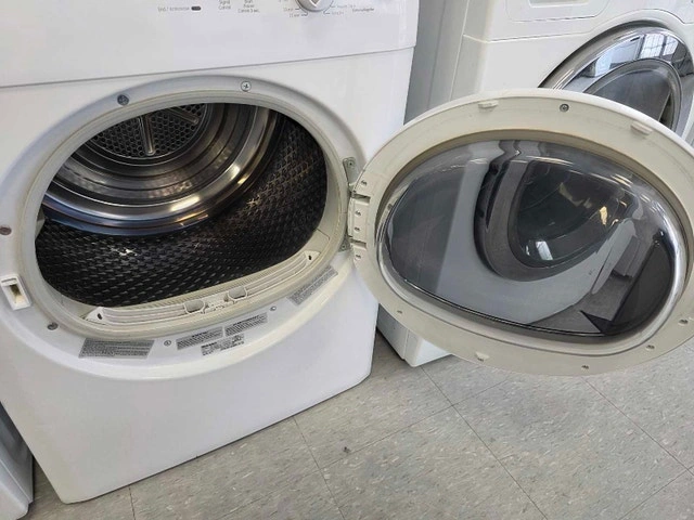 DRYER – Blomberg DV17542 • 24" compact – perfect for condos & small spaces • 3.67 cu. ft. capacity • 15 drying cycles | 4 temperature settings • Automatic sensor drying (no over-drying) • Stainless steel drum | Glass door • Stackable design • Clean filter light • Vented electric (240V) Feel free to message if you have any questions!