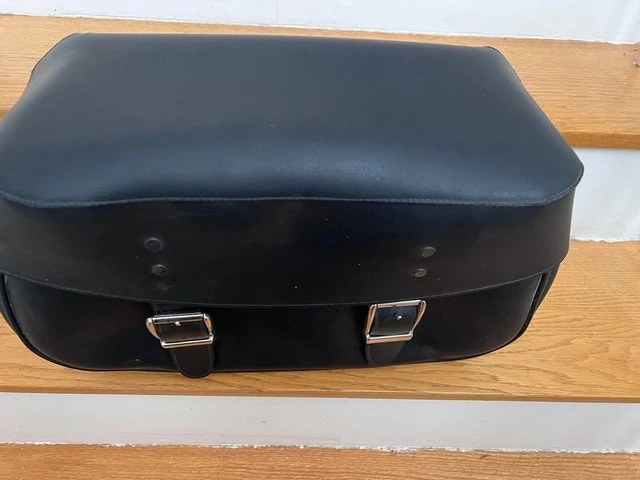 Talisman Leather Inc. Motorcycle Luggage Large Black Synthetic Leather Bag NEW!! Constructed with a double layer of Hi-Tech black synthetic leather cross weaved through the centre for added strength, UV protected and cold crack resistant. Heavy duty nickel plated buckles and nylon thread for long lasting durability and strength. Make sure to mount bags no closer than 2 inches above mufflers. Clean bags with mild soap and water ONLY!!! Made in Canada Model # S150BO Measurement: 11 length X 18 width X 6.5 deep inches 28 cm X 46 cm X 17 cm VIEW MY OTHER ADS!!!