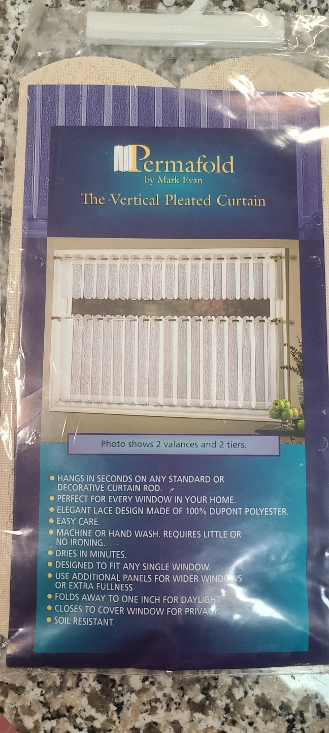 These Permafold valances are made of 100% DuPont polyester and feature an elegant lace design. They're easy care, machine or hand washable, and require little to no ironing. Use additional panels for wider windows or extra fullness.