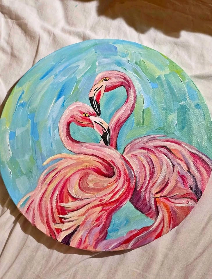 Buy & SellFLAMINGO BIRDS ACRYLIC PAINTING ON ROUND CANVASFLAMINGO BIRDS ACRYLIC PAINTING ON ROUND CANVAS$35Artwork made by me :) Acrylic painting on round canva Feel free to message if you have any questions!WHERE TO MEETCheck LocationView MapSELLERZairaLakeview Mayfield100 reviews0 chats·0 favorites·3 viewsSEND CHAT TO SELLERHi Zaira! I’m interested in your listing.Hi Zaira! I’m interested in your listing.Get the Karrot app to chatSign In to chat