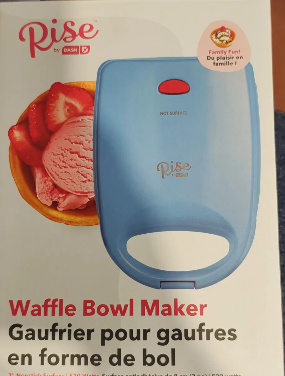 Make fun waffle bowls with this Dash Rise waffle bowl maker! It's in a nice blue colour. Perfect for a quick and easy treat for the family