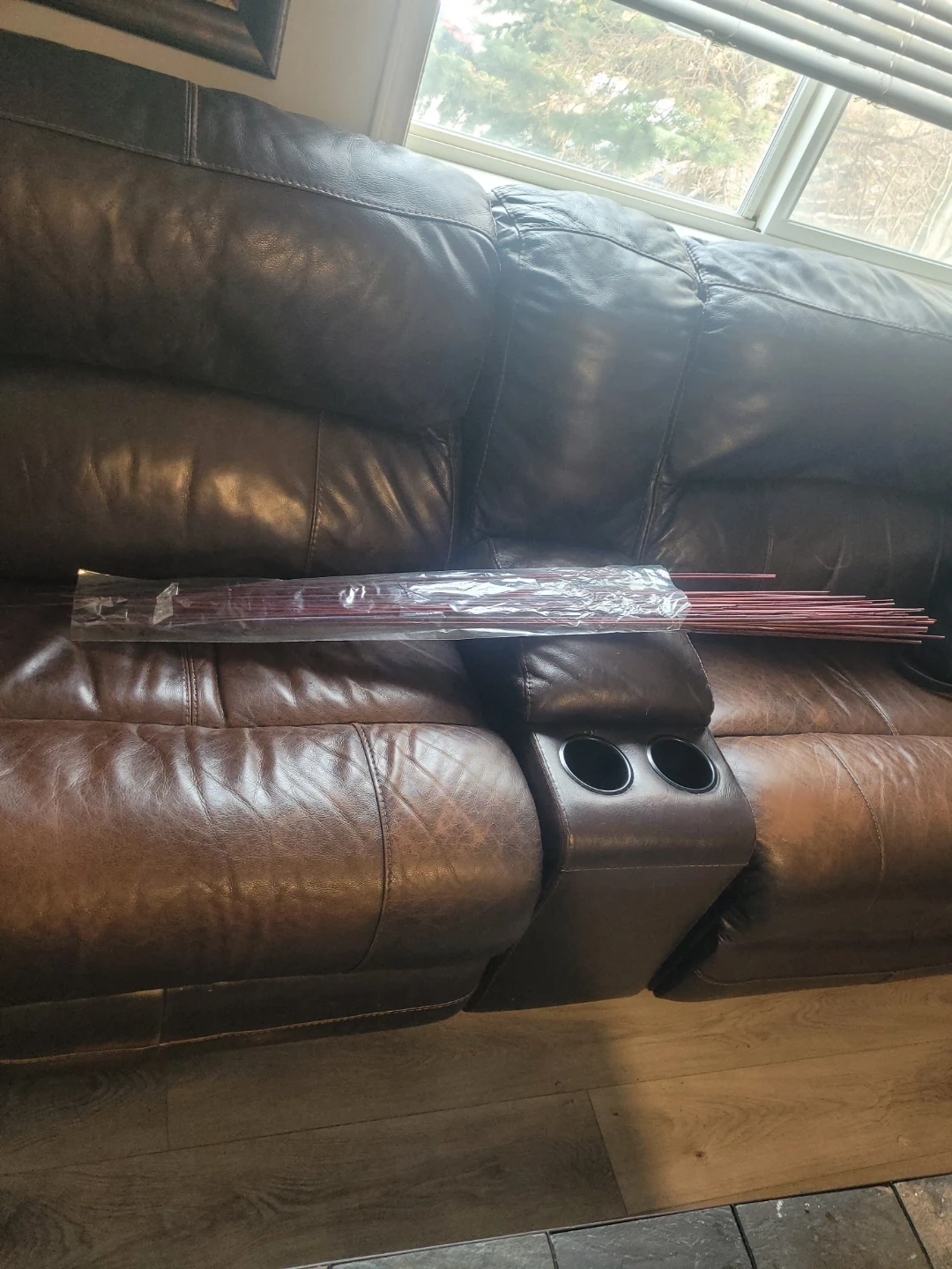 Bundle of 38 sticks for a flower arrangement. These sticks are red and measure approximately 30 inches long. They're made of a durable plastic material.