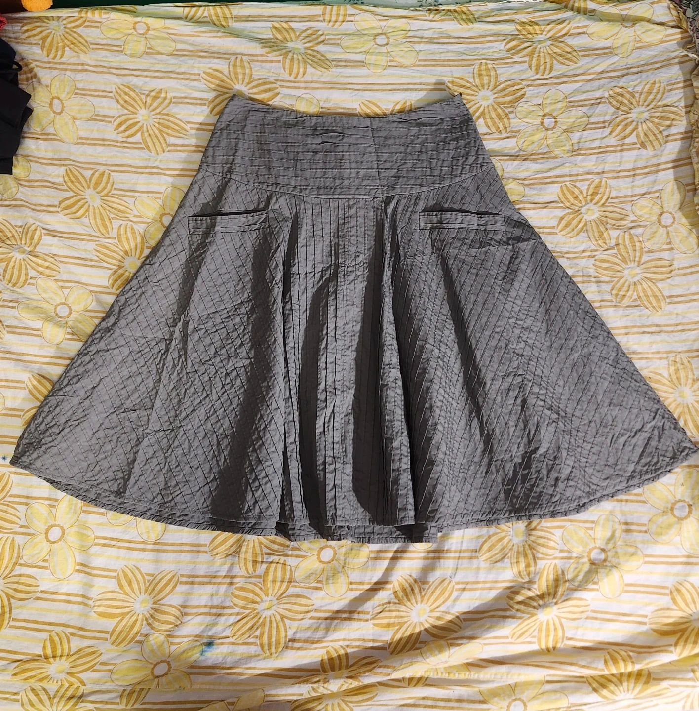 adorable grey Betsy Johson New York a-line skirt. has a cool 3D kinda ribbed texture and a zipper on the side.