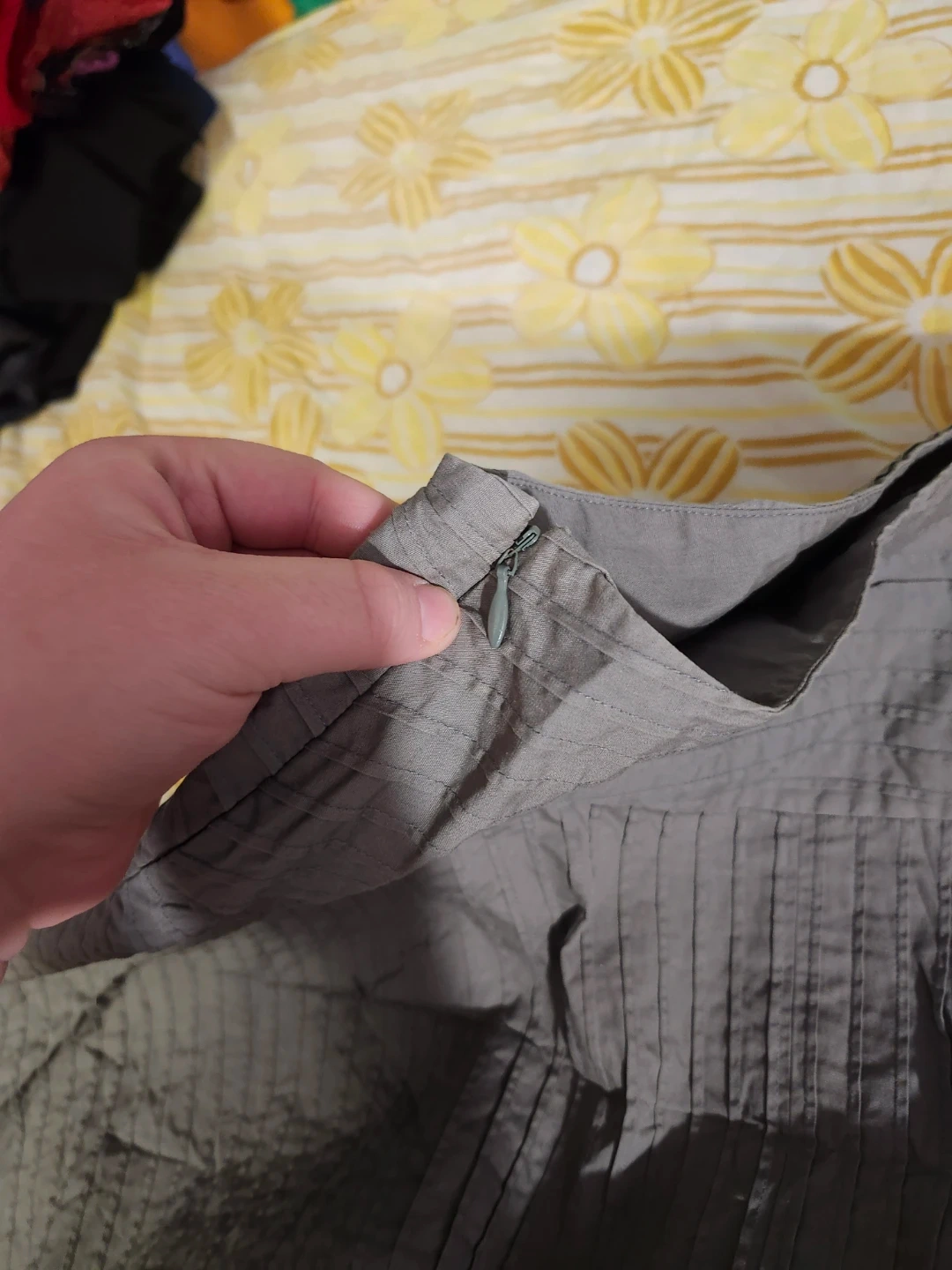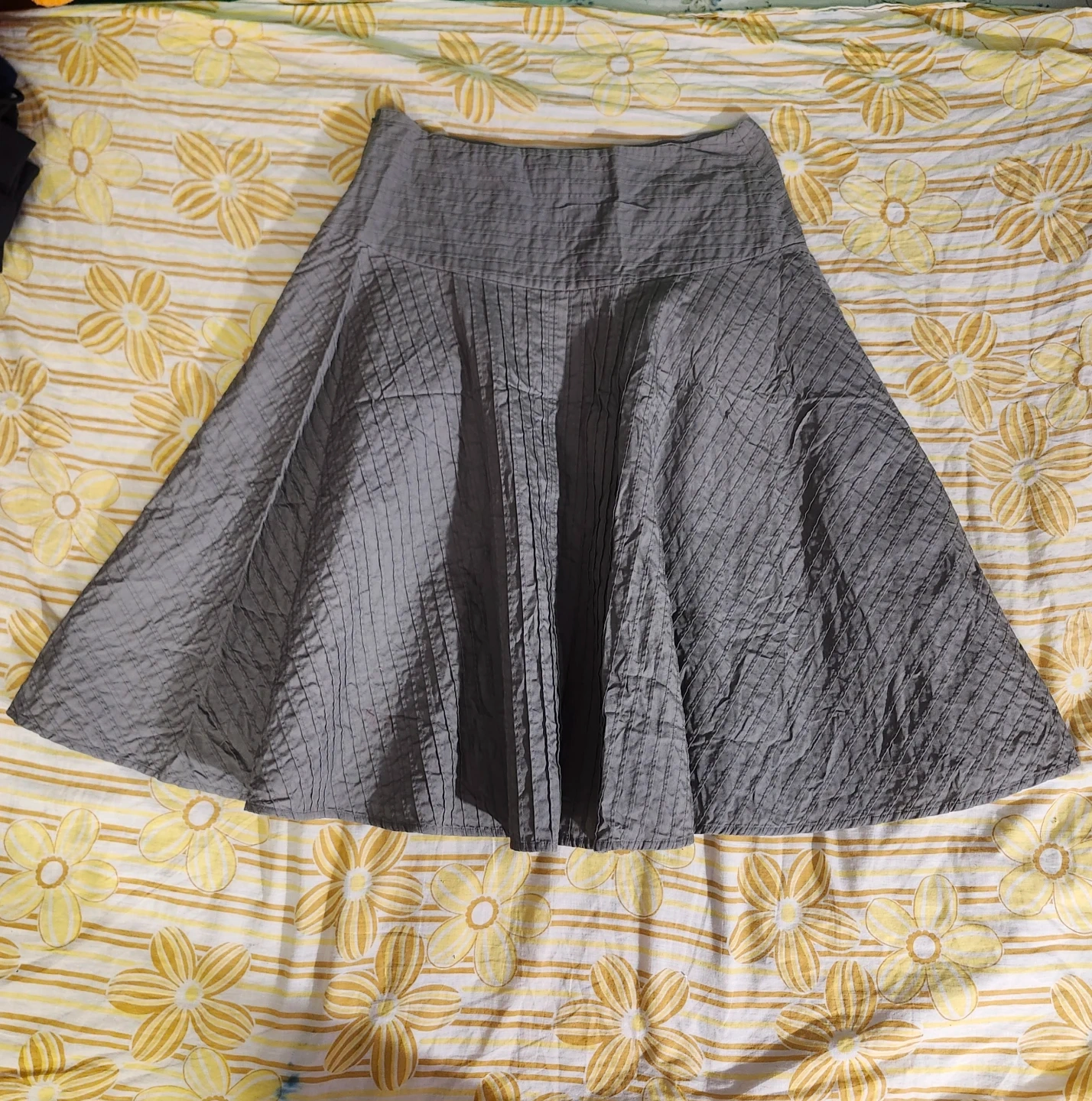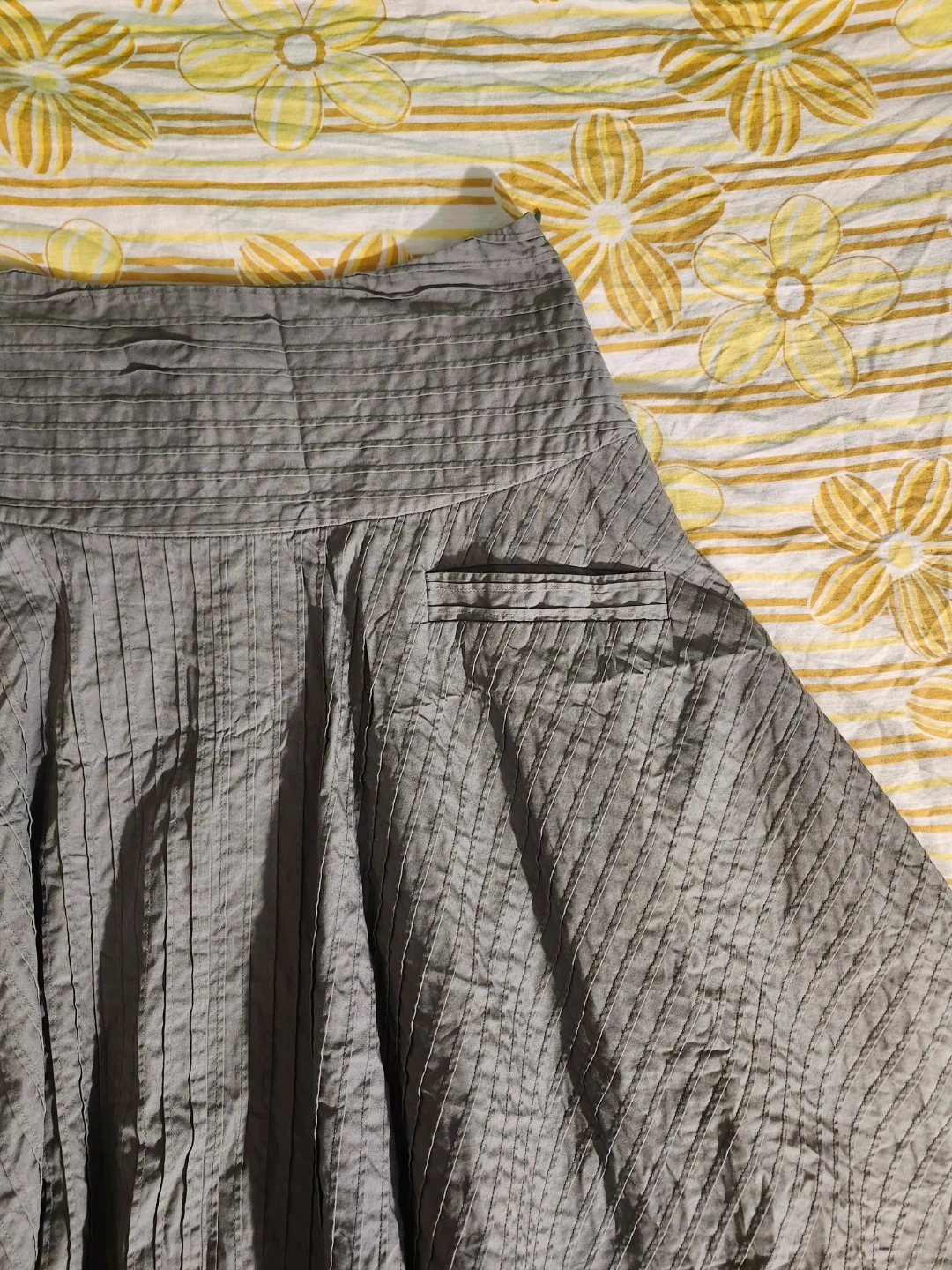 adorable grey Betsy Johson New York a-line skirt. has a cool 3D kinda ribbed texture and a zipper on the side.