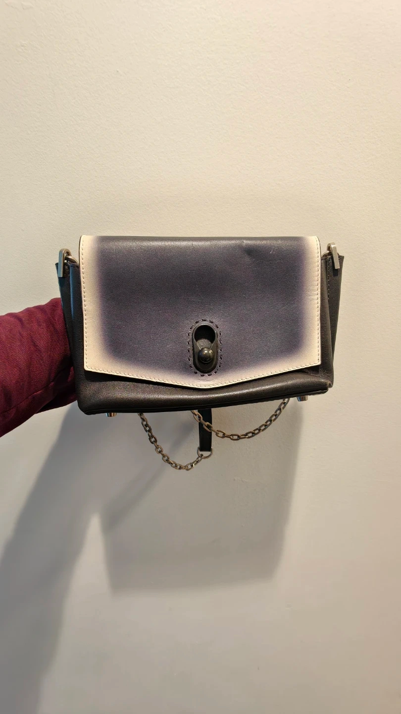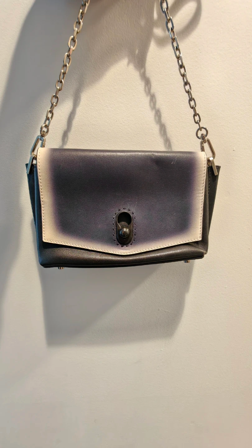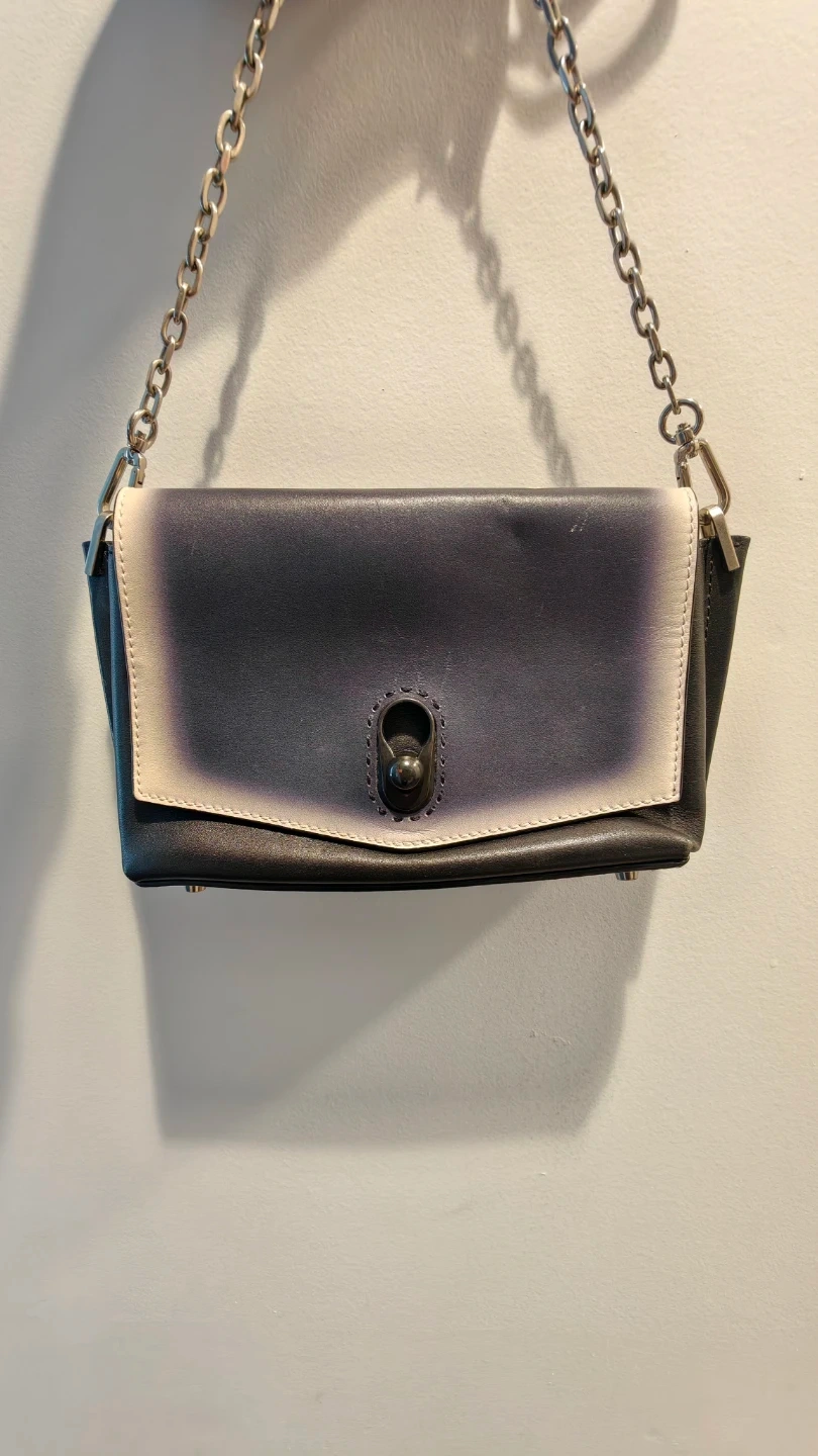 Selling a shoulder bag in black and white leather. It's in great condition and features a stylish chain strap. Perfect for adding a touch of sophistication to any outfit!