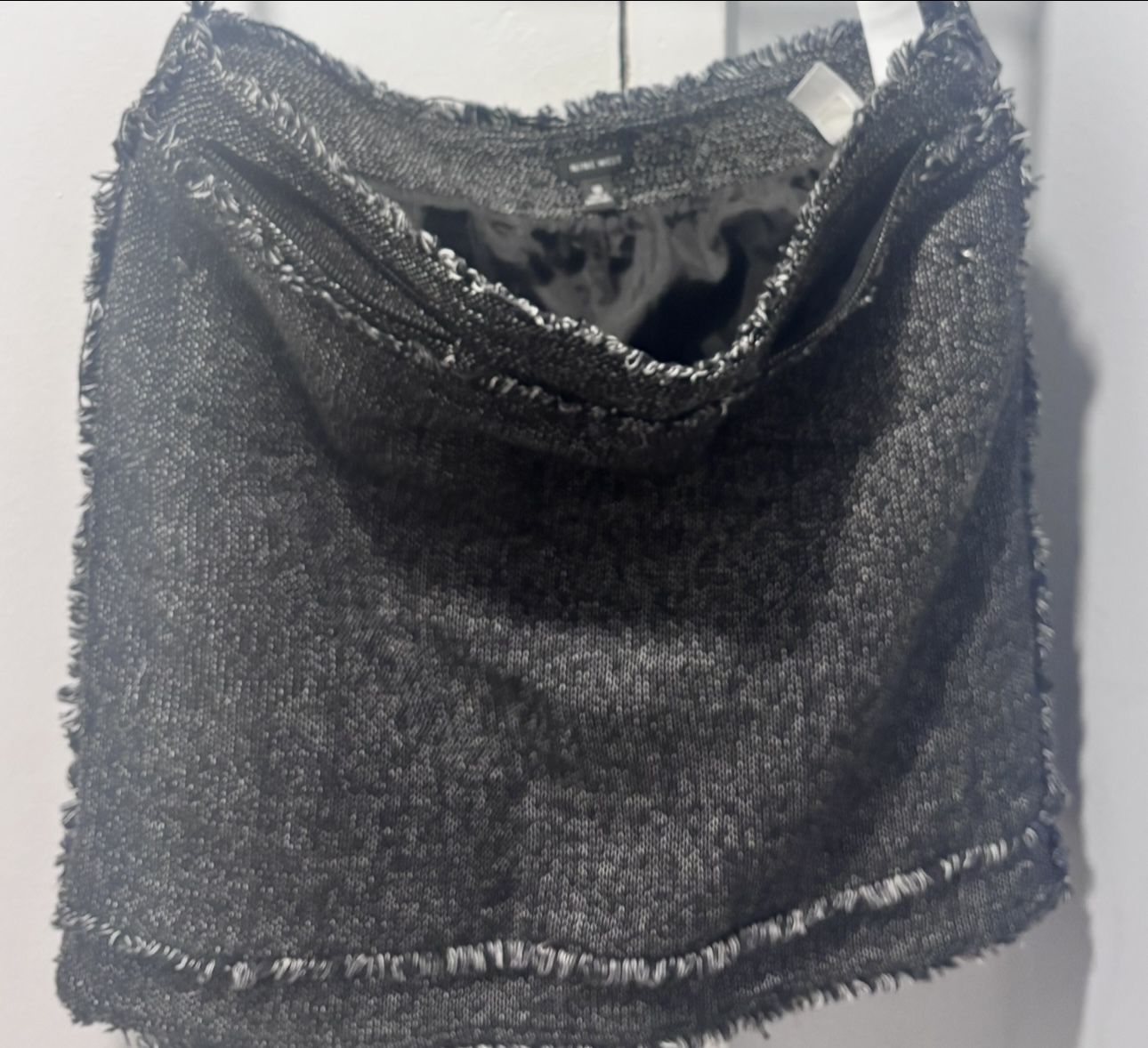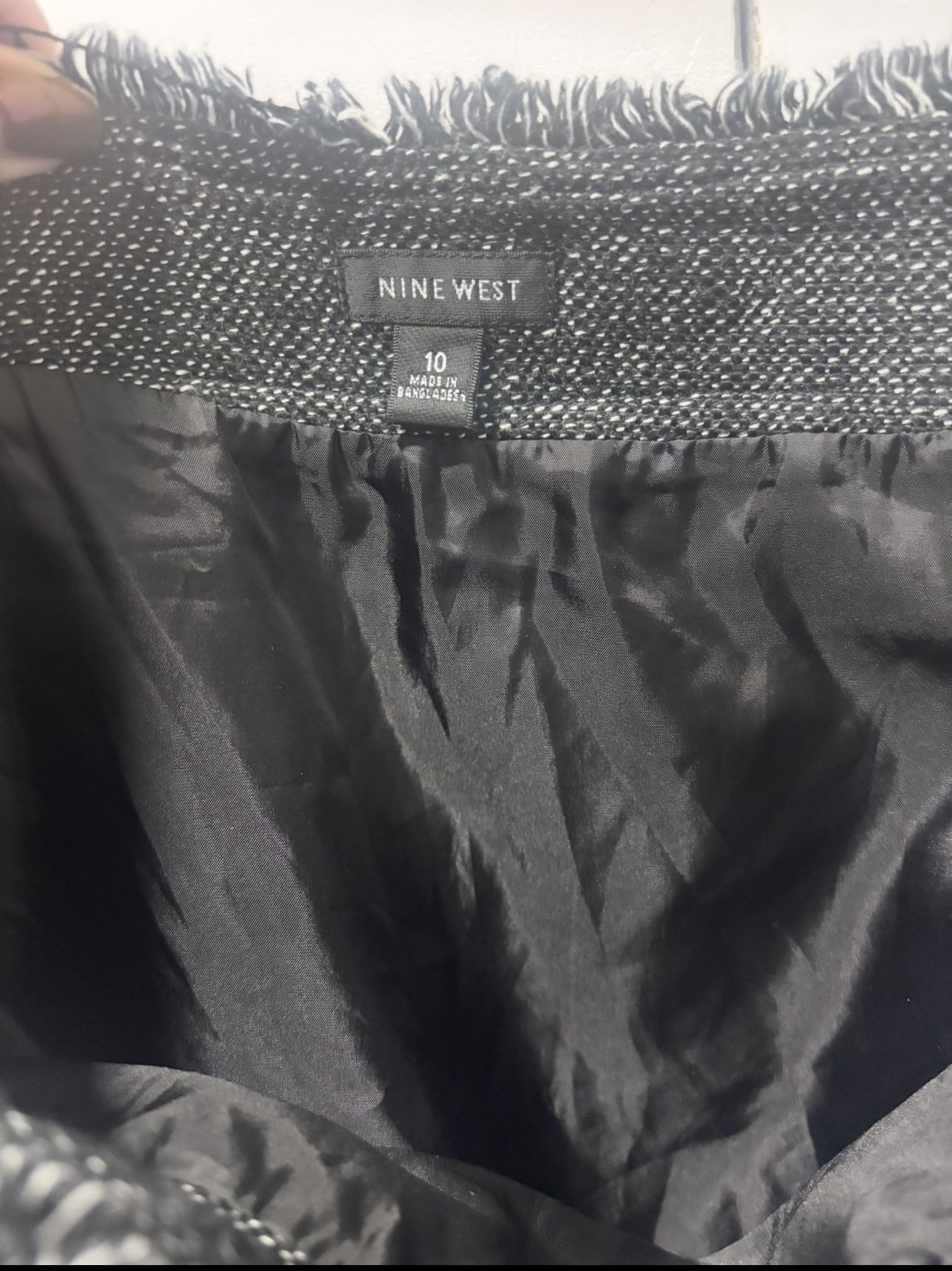 Elevate your wardrobe with this chic Nine West Black Tweed Fringe Skirt in a Size 10. This stylish piece blends classic tweed texture with modern details, making it perfect for work, dinner outings, or polished casual looks.
