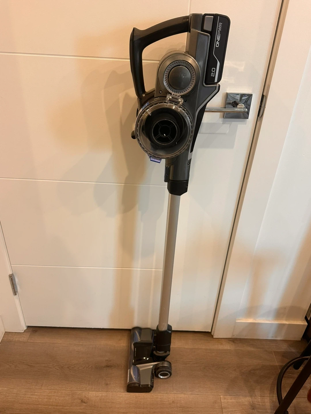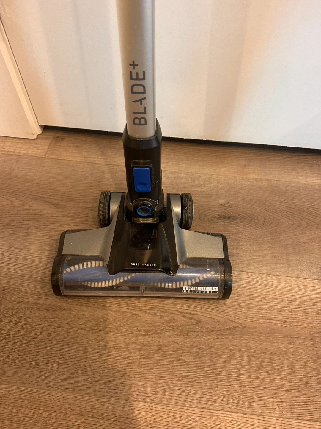 This is a Hoover ONEPWR Blade+ cordless stick vacuum. It's designed for easy cleaning with multiple power settings. The vacuum features a dust tracker and twin helix brush roll for effective dirt pickup.