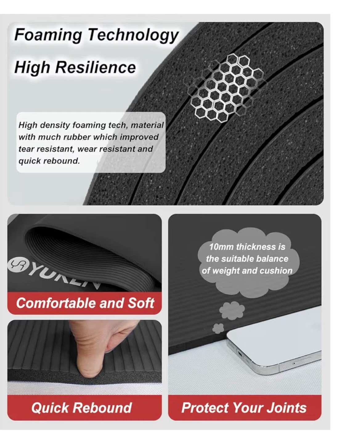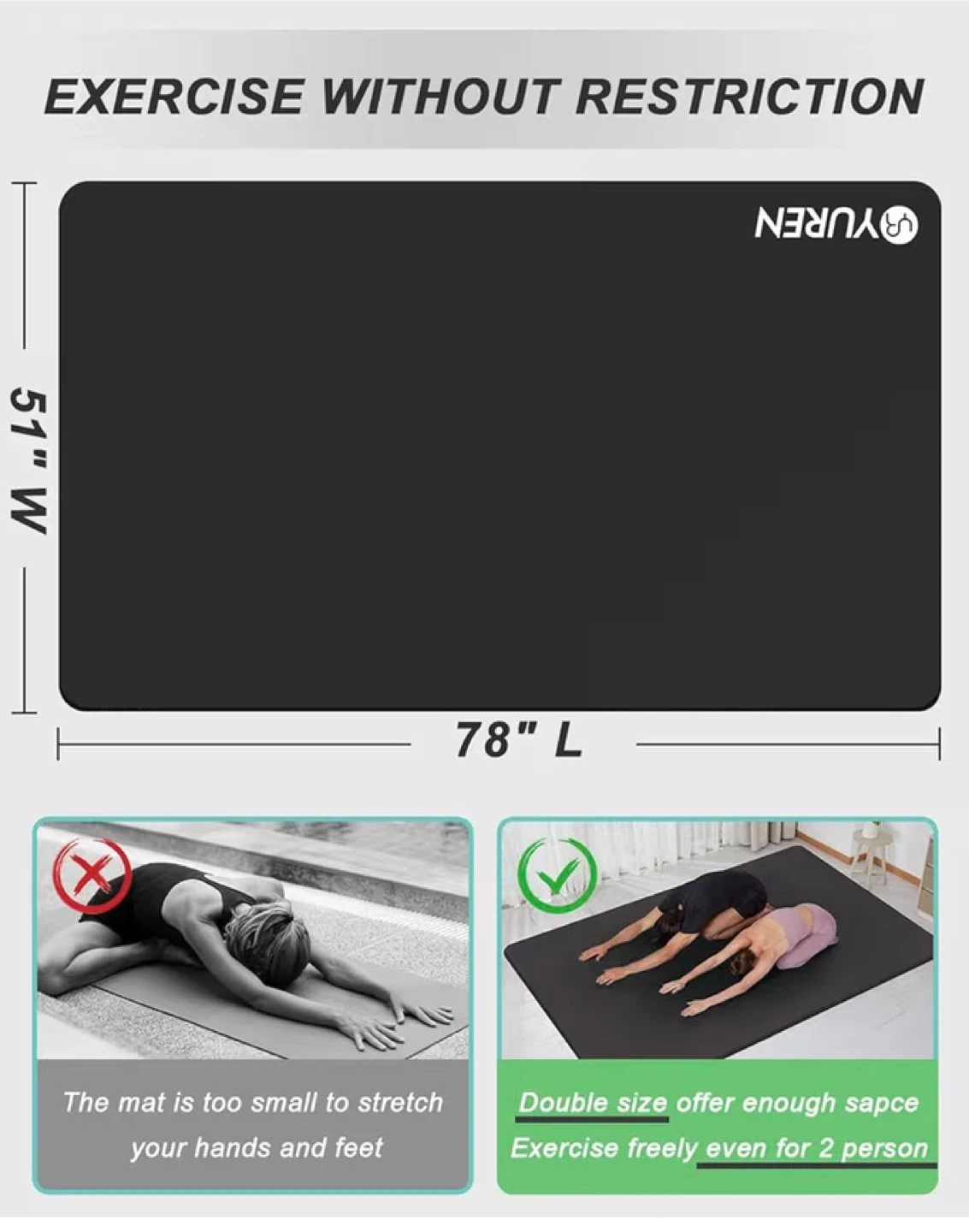 YUREN Large Exercise Mat - 10mm Thick, 78" x 51"