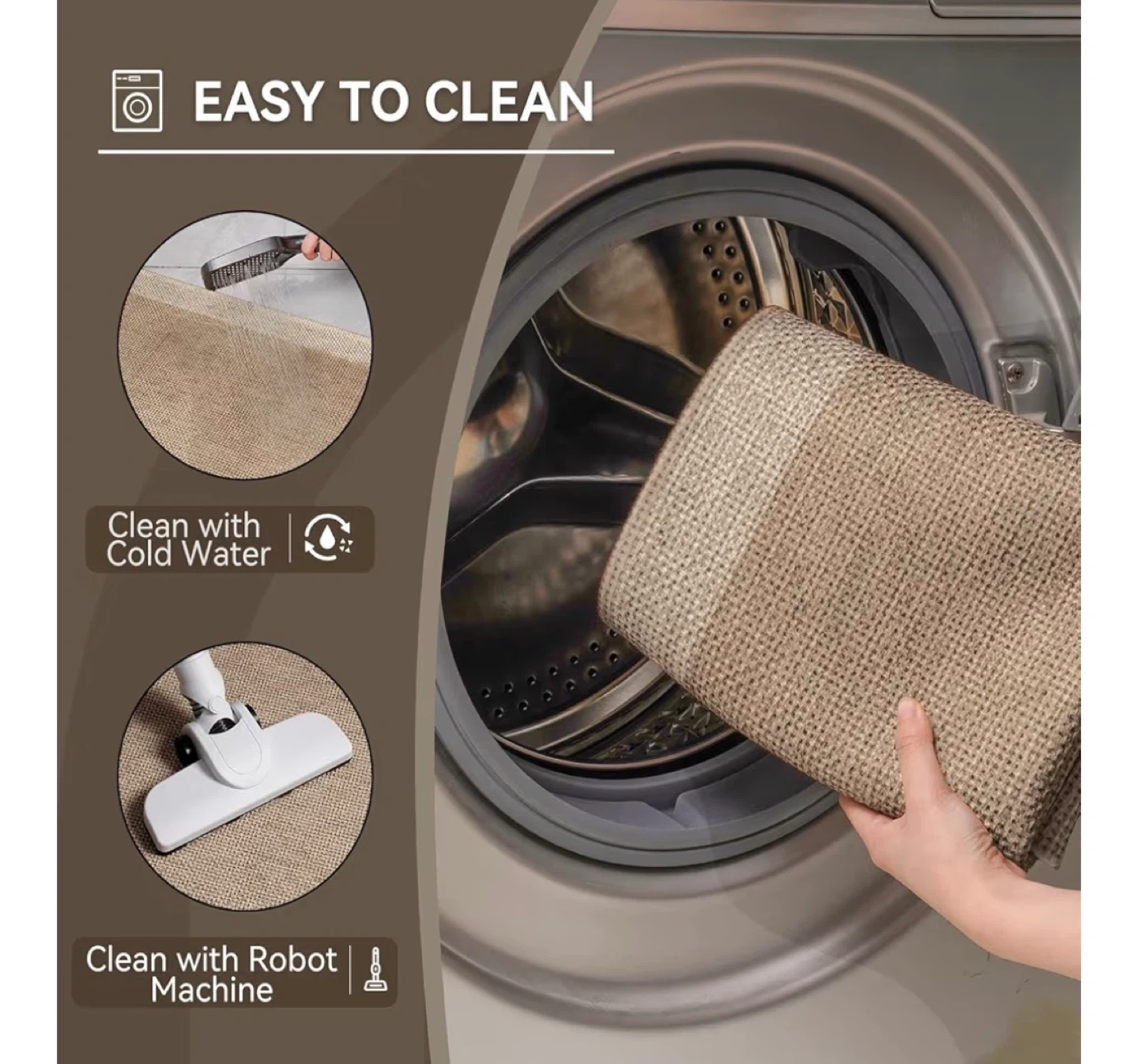 ULTRA THIN BATHROOM RUGS: This braided thin half round bathroom carpet 20x31 fit under door has a thin profile that is easy to pass through doors or wheels and won't obstruct the opening or closing of doors. The thickness is about 0.2 inches. Please check if it fits your needs first. This thin bath mat brown is perfect for bathroom, bathroom showers, bathtub mat, bathroom runner rugs & sink mats.