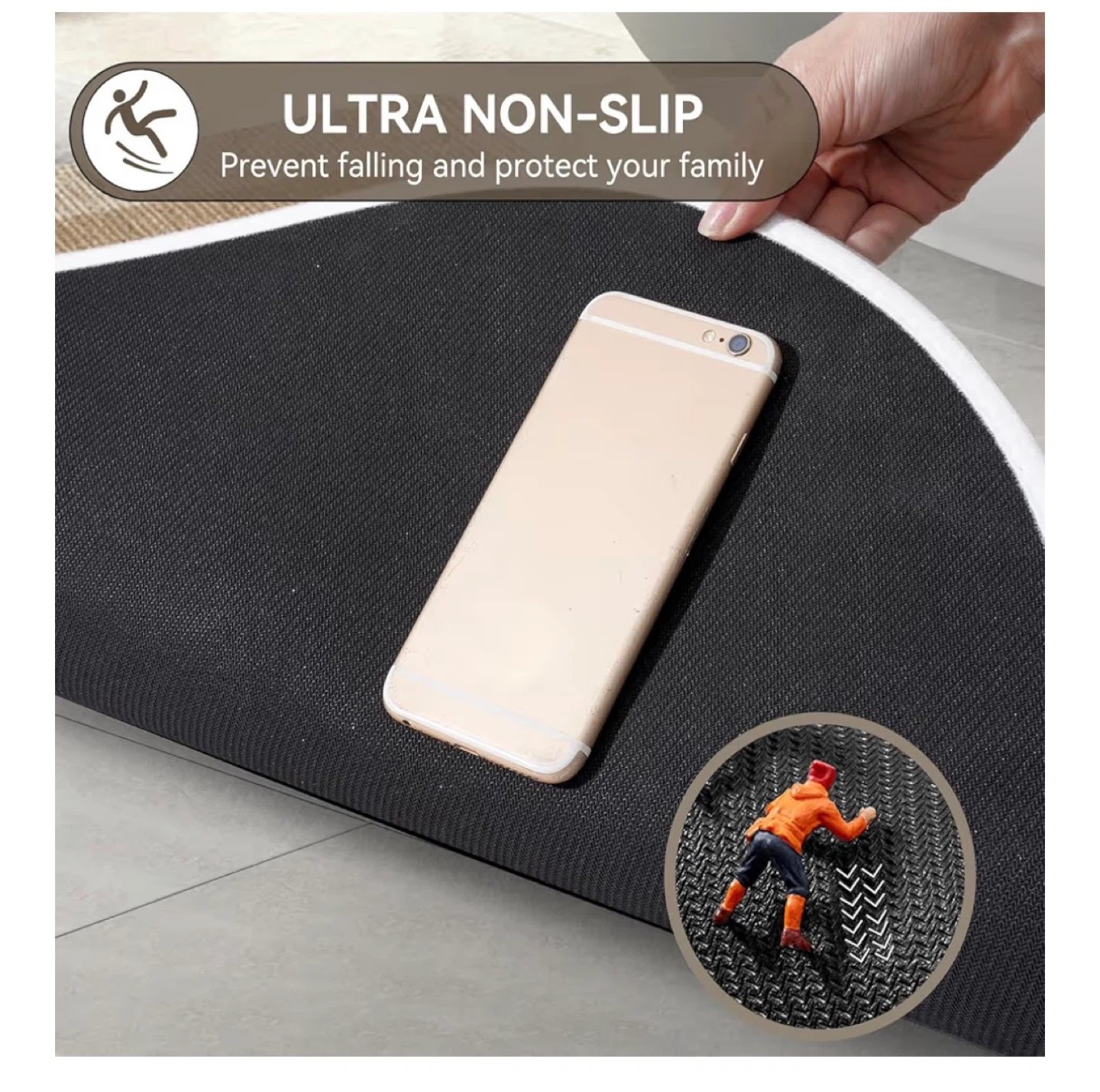 SUPER NON-SLIP BATHROOM RUGS: Step on your half round bath mat with confidence, this non-slip bathroom rugs features a premium rubberized non-slip backing that grips any floor securely, keeps bath rugs in place and are non-slip even on wet floors. The waterproof backing prevents water from seeping in & keeps your floor dry. Say goodbye to slippery accidents! The carefully crafted non slip bathtub 20x31 bath mat offers great stability for worry-free bathing.