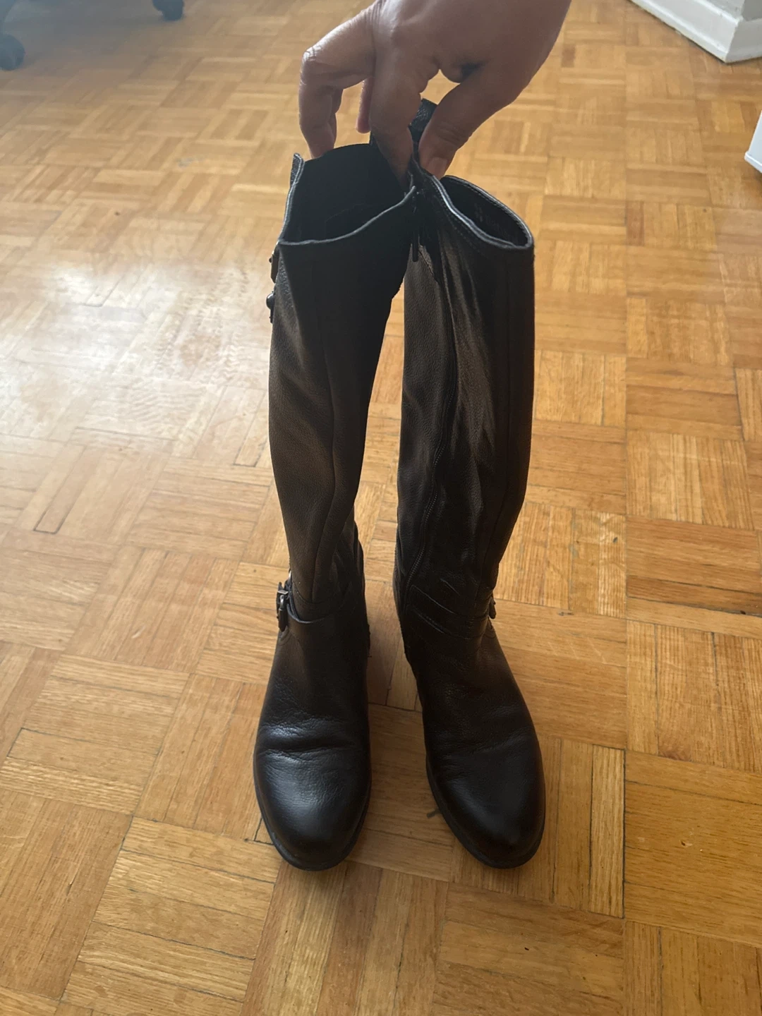 I'm selling a pair of Naturalizer knee-high boots in black leather. They're in great condition and feature a comfortable N5 Comfort design. Perfect for adding a stylish touch to any outfit!