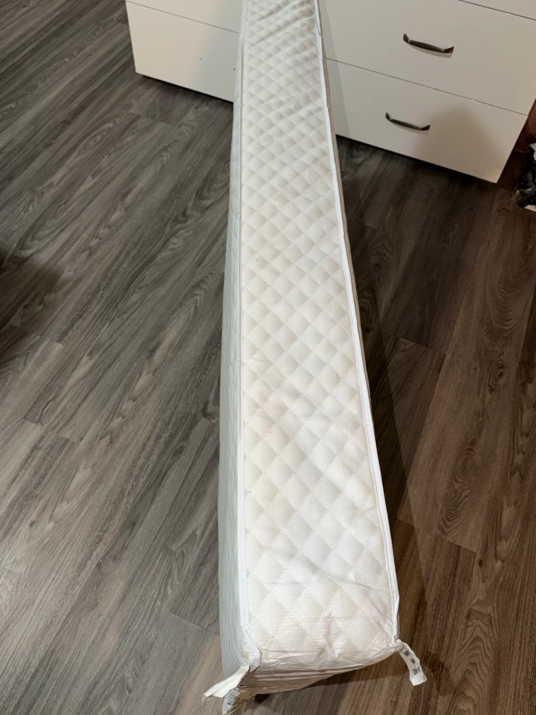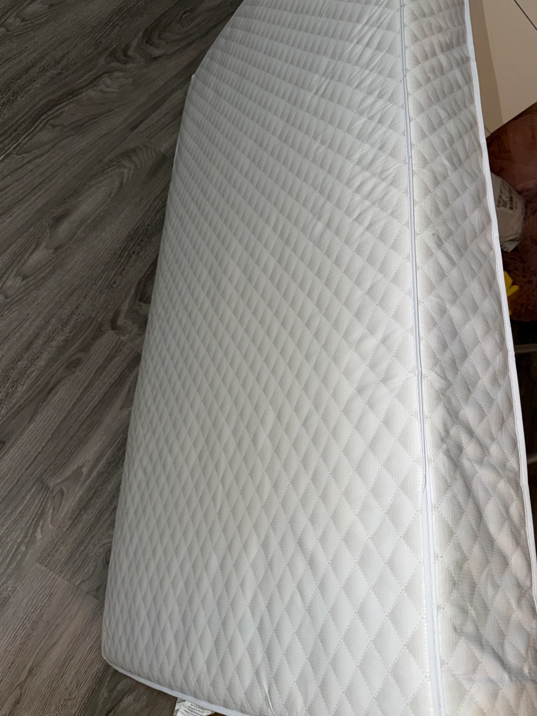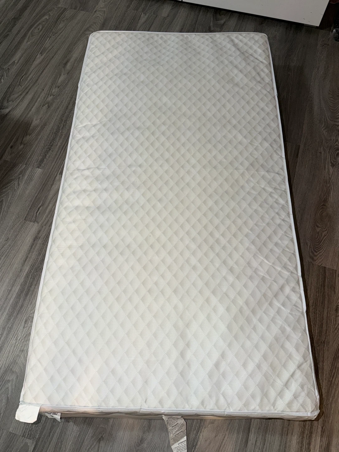 Gently used kids mattress in good condition. Firm and supportive, great for a toddler or young child. Quilted white cover with light signs of use, but no major stains or damage. Always used with a mattress protector in a smoke-free home.