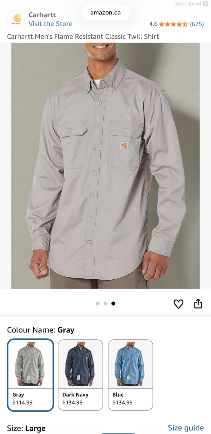 Buy & SellCarhartt FRCarhartt FR$35Carhartt FR Grey Size L NFPA 2112 standards for flame resistance. FRS003 GRYBrandCarharttWHERE TO MEETCheck LocationView MapSELLERverifiedNehemiasDovercourt34128 reviews0 chats·0 favorites·17 viewsSEND CHAT TO SELLERHi Nehemias! I’m interested in your listing.Hi Nehemias! I’m interested in your listing.Get the Karrot app to chatSign In to chat