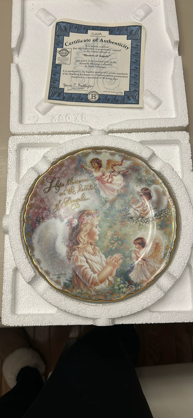 Selling a Bradford Exchange collector's plate from the Hearts of Angels series! It comes with a certificate of authenticity and the original packaging