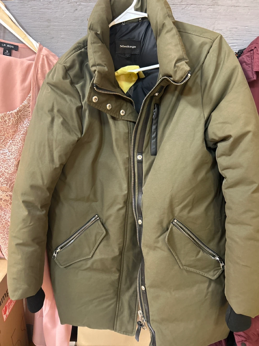 Selling a Mackage down parka in great condition! It's a stylish and warm jacket perfect for the Canadian winter. The colour is a versatile olive green. Features include zippered pockets and a sleek design.