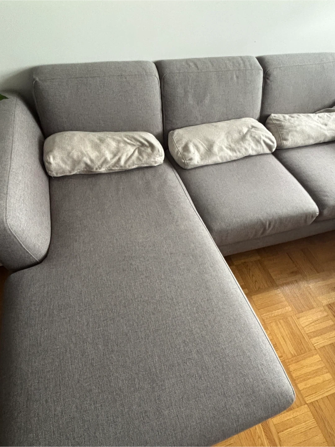 Selling a comfortable gray L shape sofa left facing. it’s in good condition and would be a great addition to any living room. No pet issues.