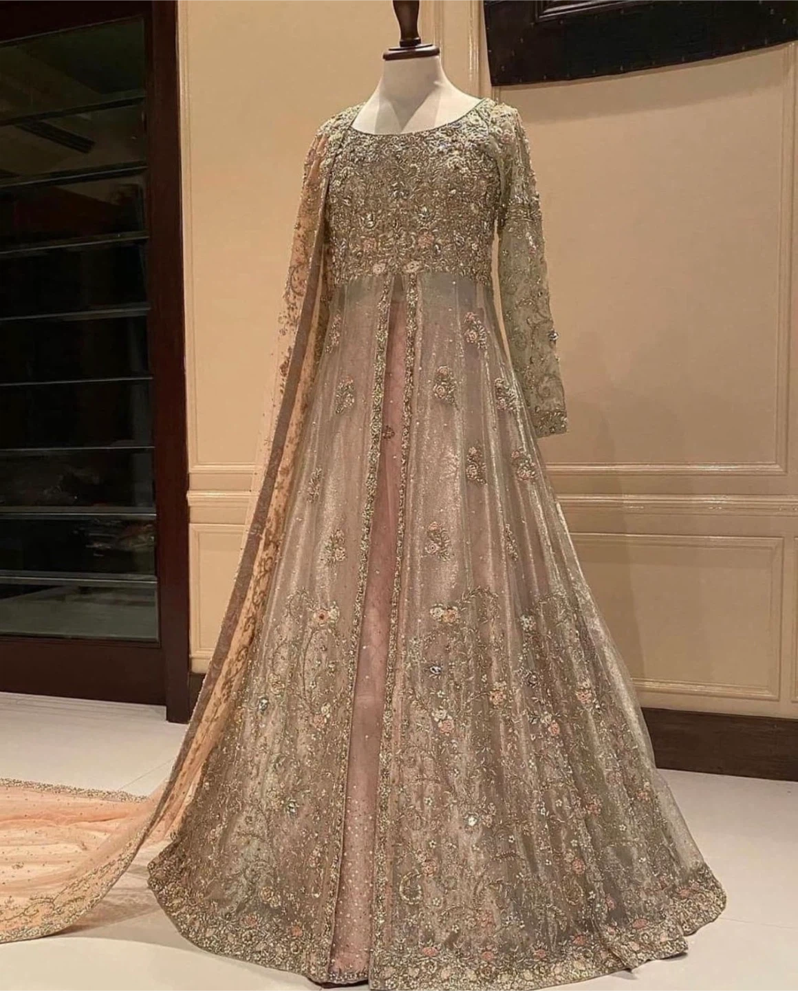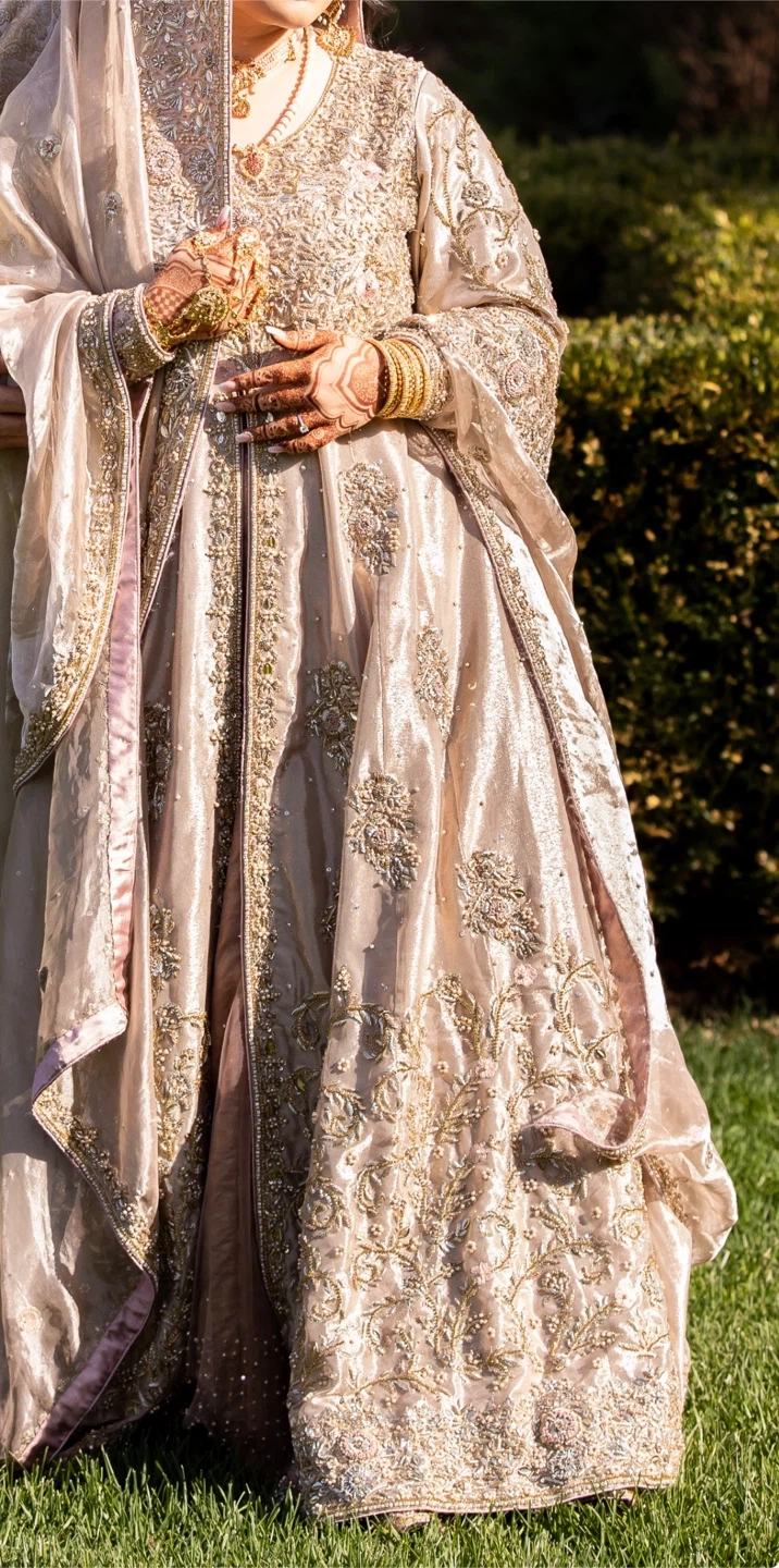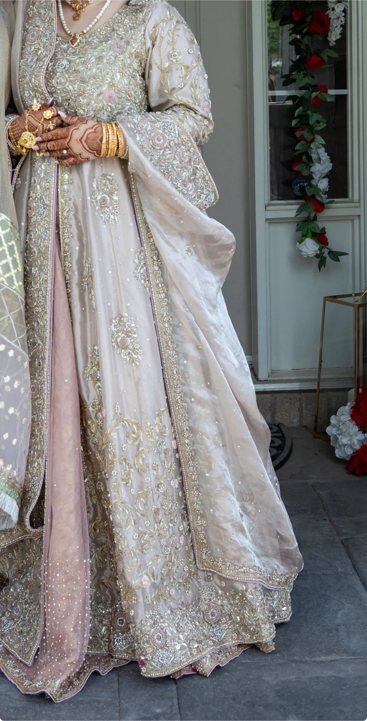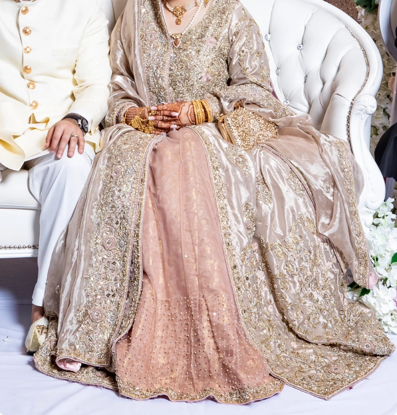 ✨ Pakistani Bridal / Wedding Dress – Champagne Gold with Blush Pink ✨