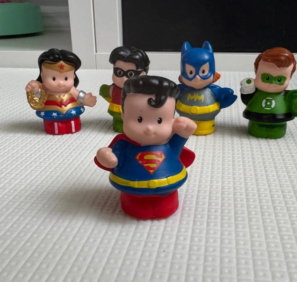 Fisher-Price Little People DC Superheroes set in excellent used condition. Includes 5 figures: Superman, Wonder Woman, Robin, Batgirl, Green Lantern, Jocker. Clean, from smoke-free home. No cracks or major wear. Ready for play. Great addition to any Little People collection. Pickup in Richmond Hill.