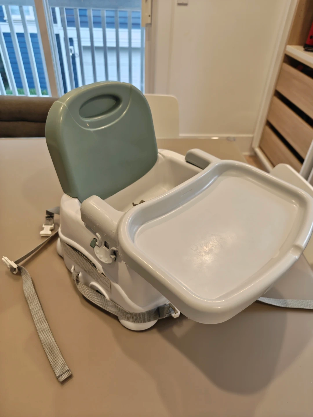 It's in great condition and ready for your little one! This booster seat is perfect for mealtime and travel, offering a comfortable and secure spot for your child.
