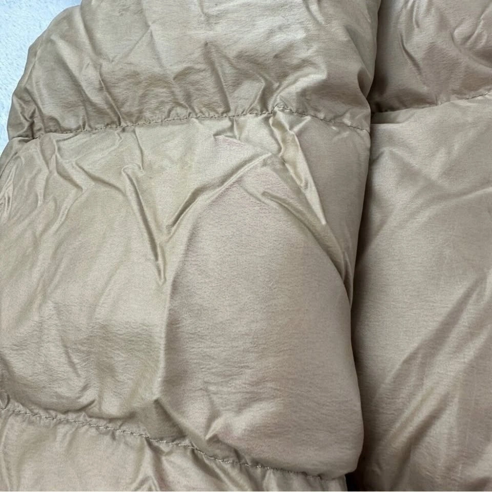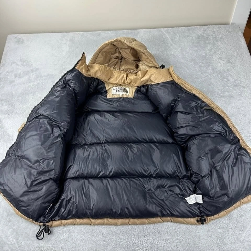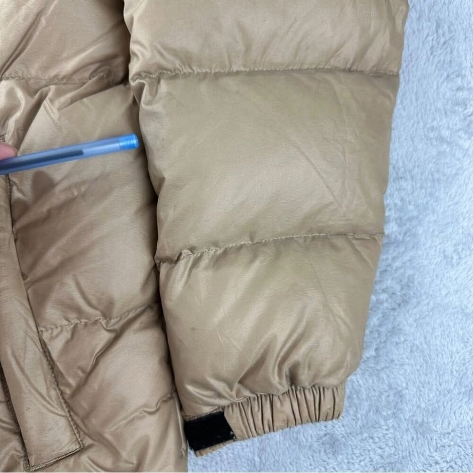 Vintage The North Face Brown Label Men's Size Small 700 Down Fill Puffer Jacket in fair pre owned condition as shown in the photos. There is red marking on the right side of the hood, some red marking on the right sleeve, and a small stain on the left hand side front sleeve.