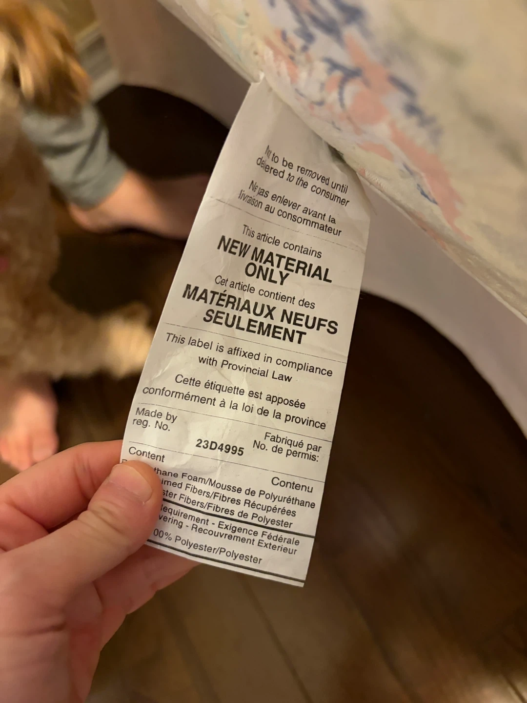 Queen size mattress with a floral pattern. It's made with Polyurethane Foam/Foam and polyester fibers. This mattress has a box spring base with a floral fabric.