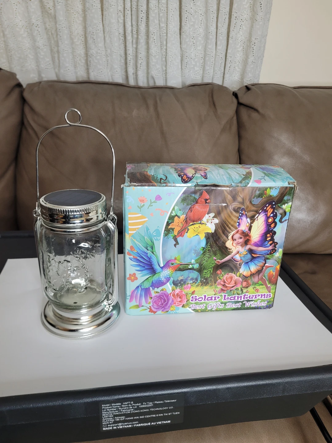 These solar lanterns are perfect for adding a touch of whimsy to your outdoor space! The box says 'Solar Lanterns Best Gifts Best Wishes'. They're in great condition and ready to brighten up your garden or patio