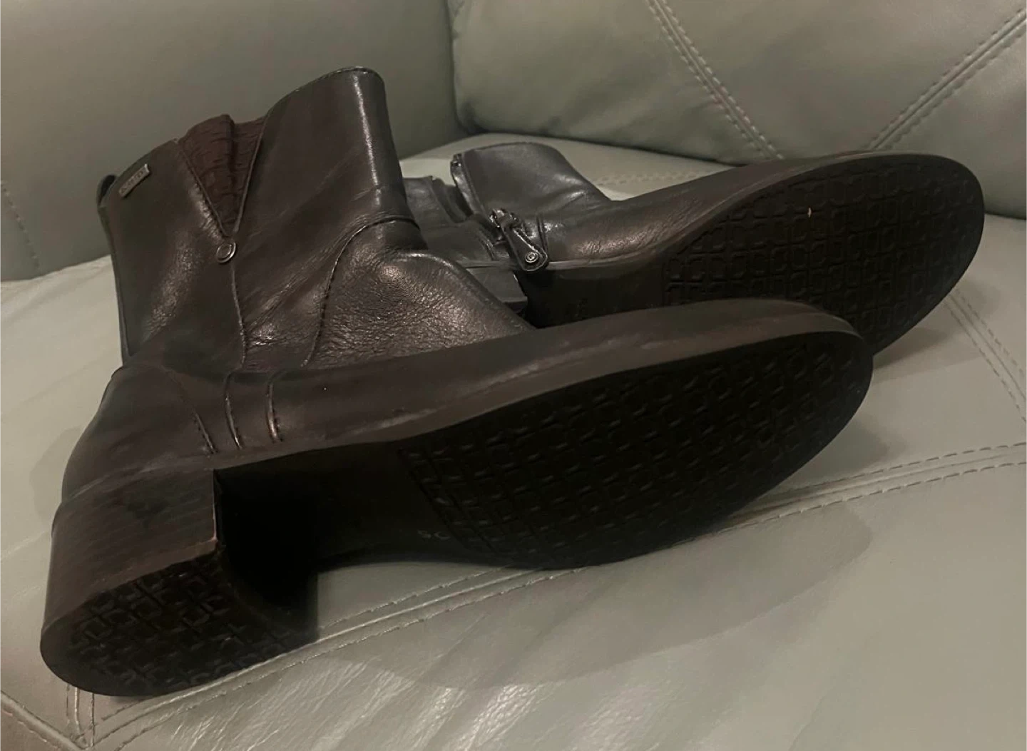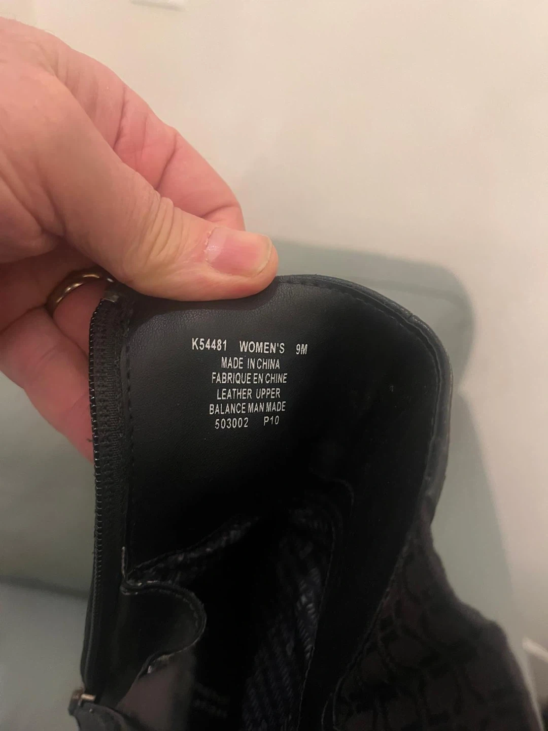 These stylish black leather ankle boots are a size 9M. They feature a comfortable man-made balance and a zipper closure for easy wear. Perfect for everyday use in cooler weather!