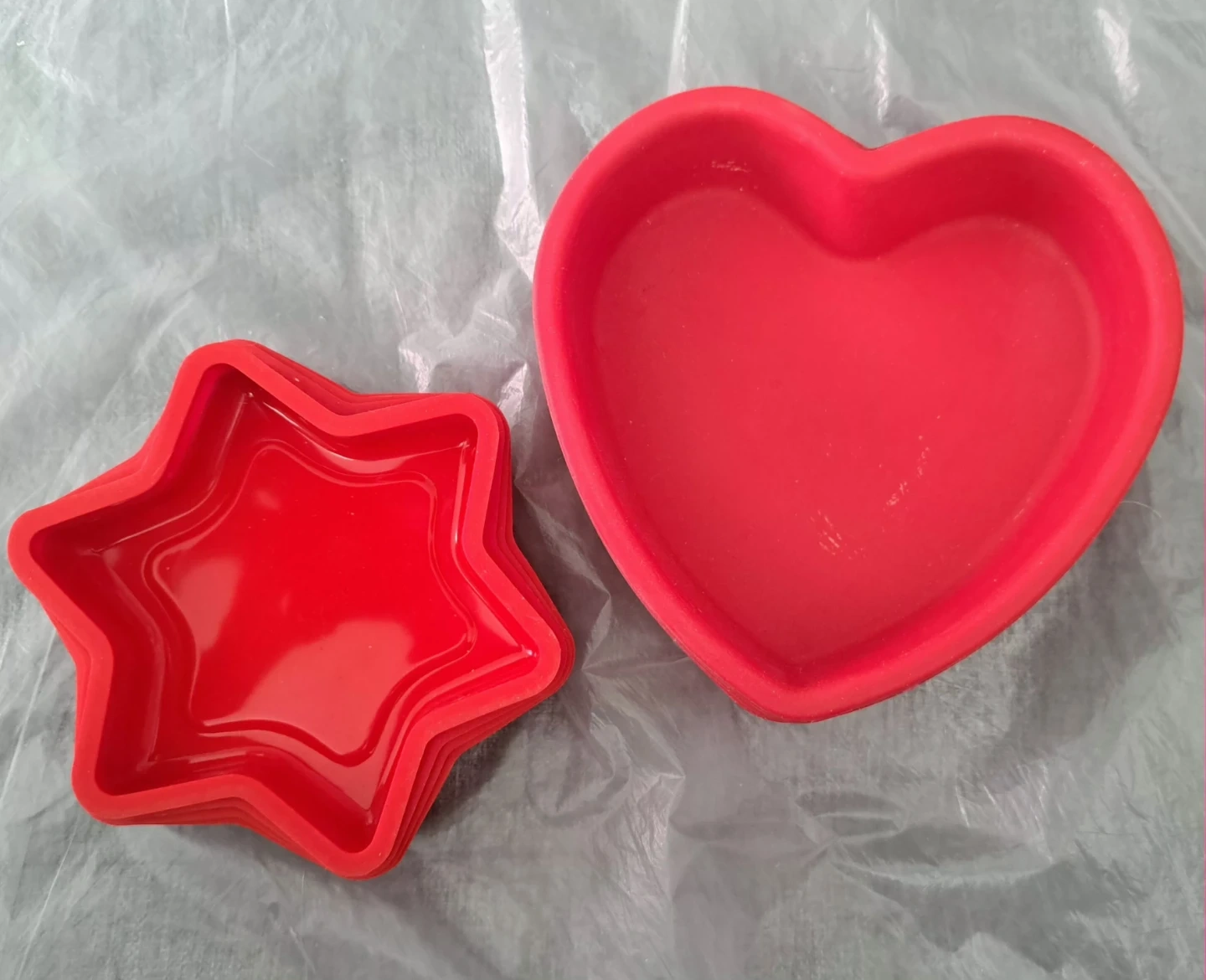 One set of red silicon heart + start shapes are $15.