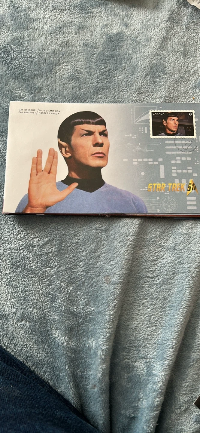 Canada Post Star Trek 50th Anniversary limited edition cover featuring Spock. Includes a stamp and commemorative artwork. Perfect for Star Trek collectors!