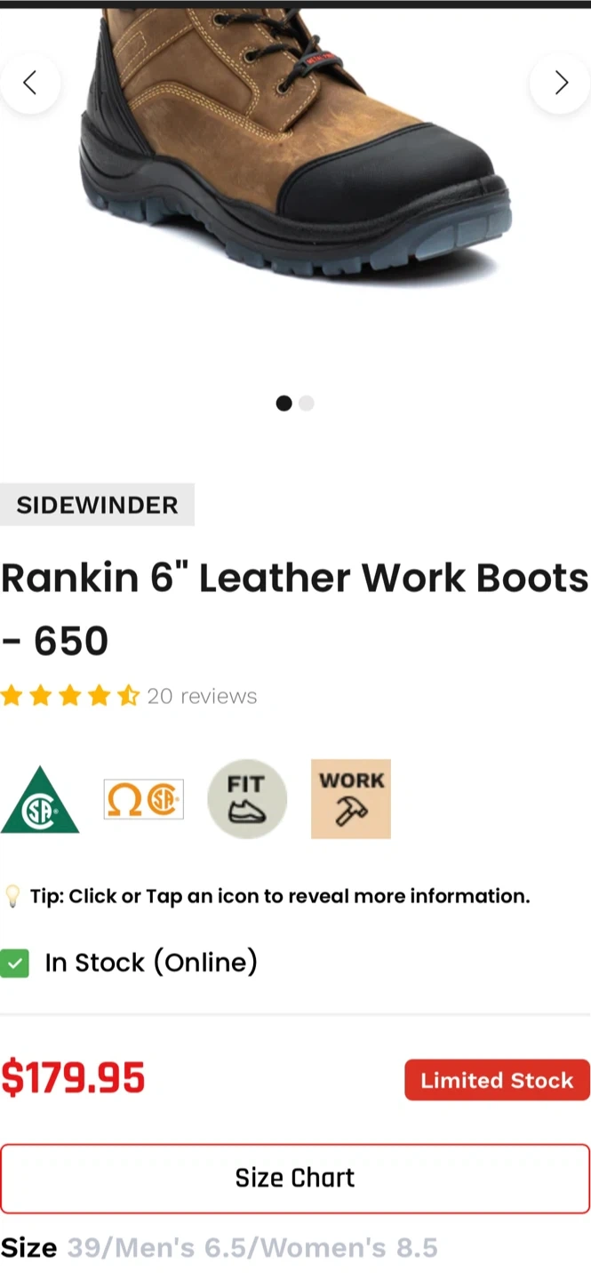 Sidewinder Steel Toe Work Boots - Size 8 (41)