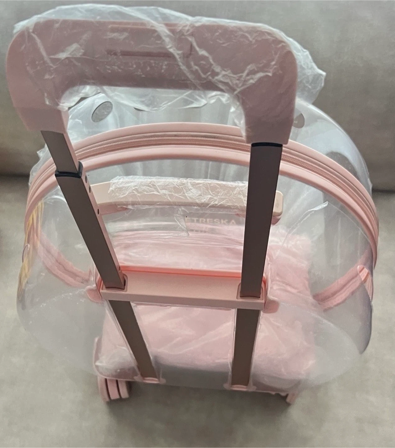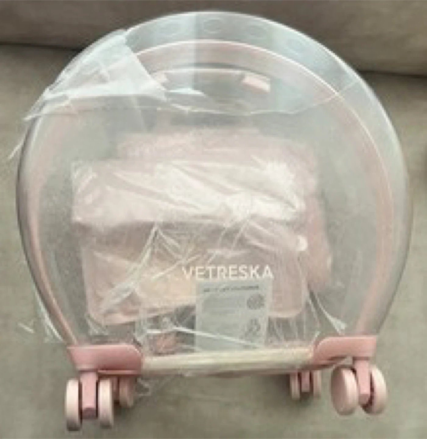 VETRESKA Transparent Pet Carrier Rolling Pink