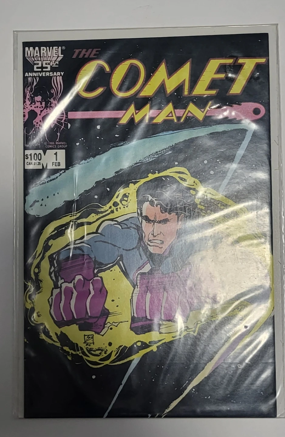 A collection of assorted Marvel and DC comic books. This lot includes The Comet Man, Mark Hazzard: Merc, The Marvel Saga, and Ambush Bug Stocking Stuffer. Comic books are a fun read for collectors and fans! All First issues, all NM condition.