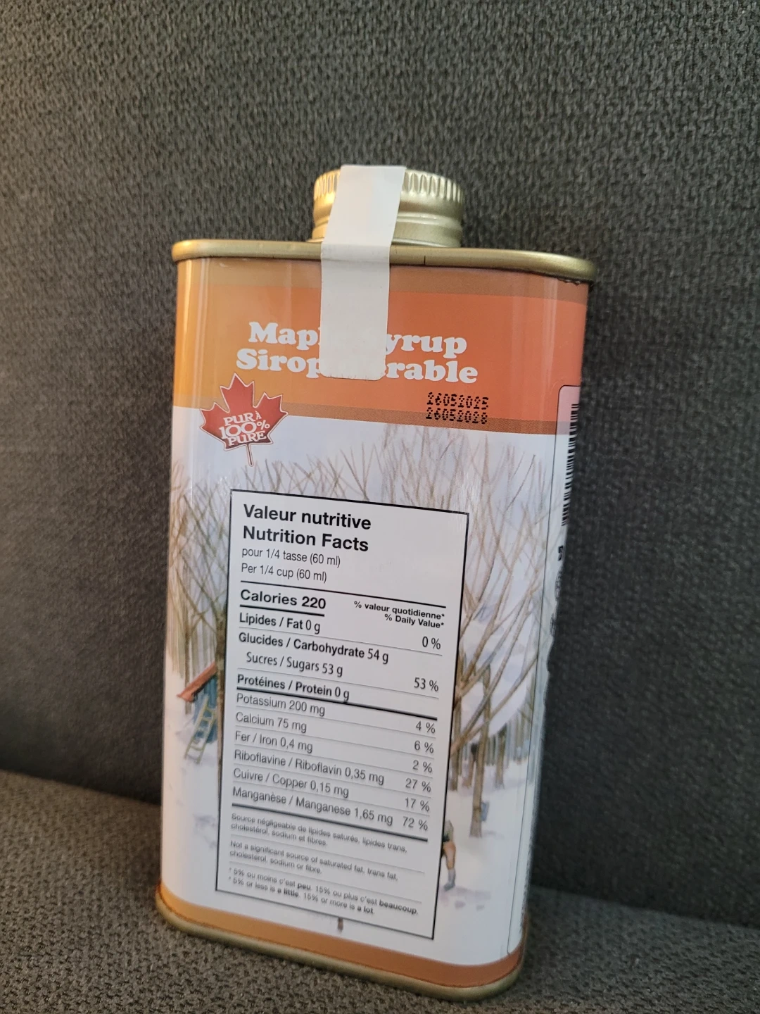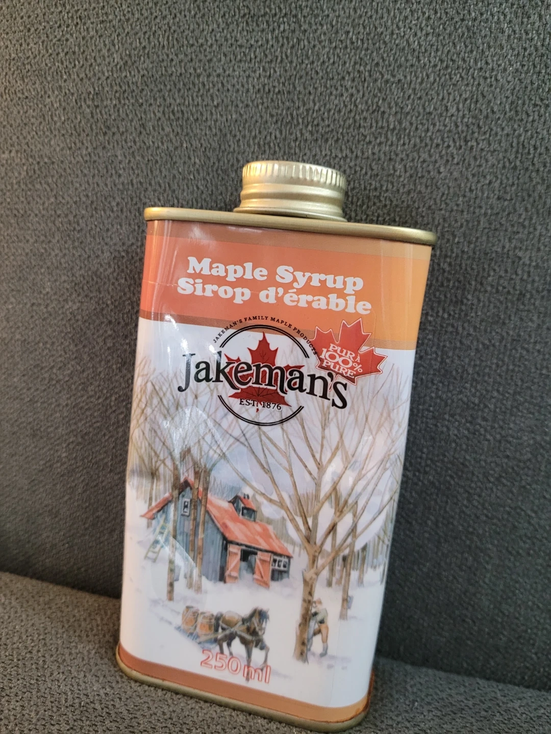 Buy & SellJakeman's Maple Syrup 250ml TinJakeman's Maple Syrup 250ml Tin$8Jakeman's maple syrup in a 250ml decorative tin. Made with pure maple syrup, it's delicious on pancakes or waffles. 53% sugars per serving.ConditionNewWHERE TO MEETBathurst StreetView MapSELLERverifiedLethLljLawrence27518 reviews0 chats·1 favorites·19 viewsSEND CHAT TO SELLERHi LethLlj! I’m interested in your listing.Hi LethLlj! I’m interested in your listing.Get the Karrot app to chatSign In to chat