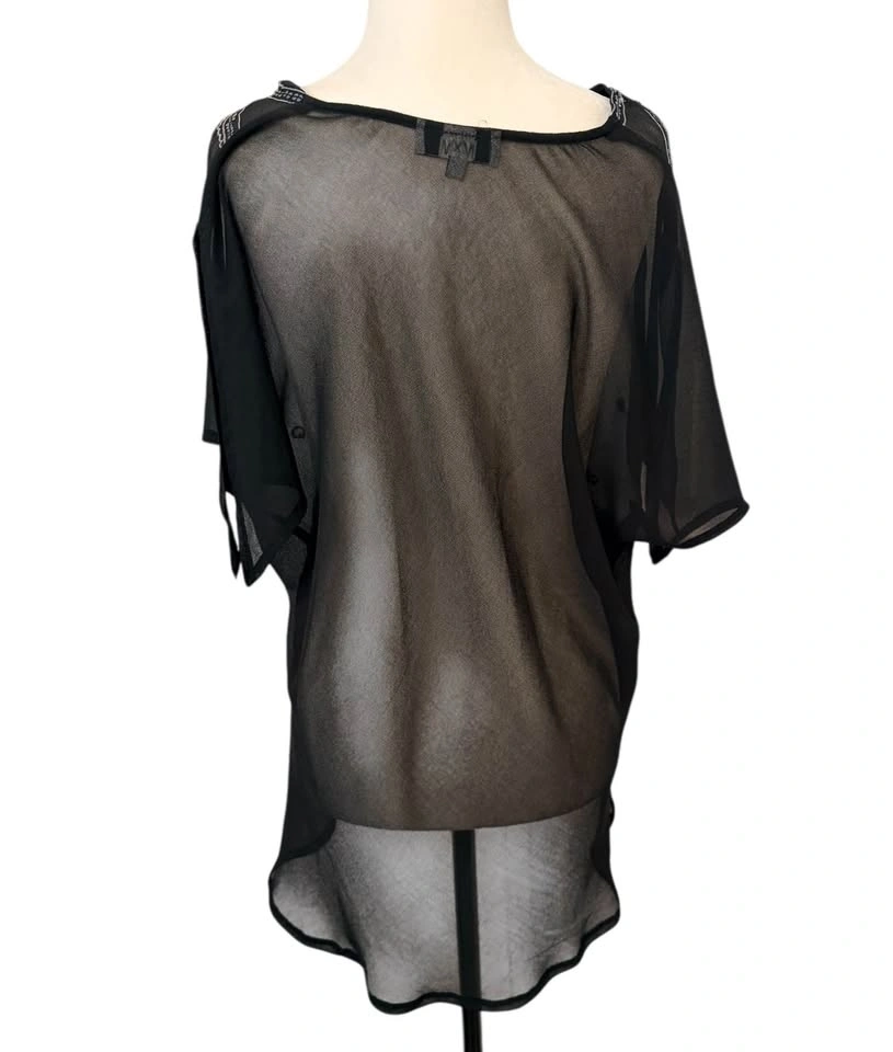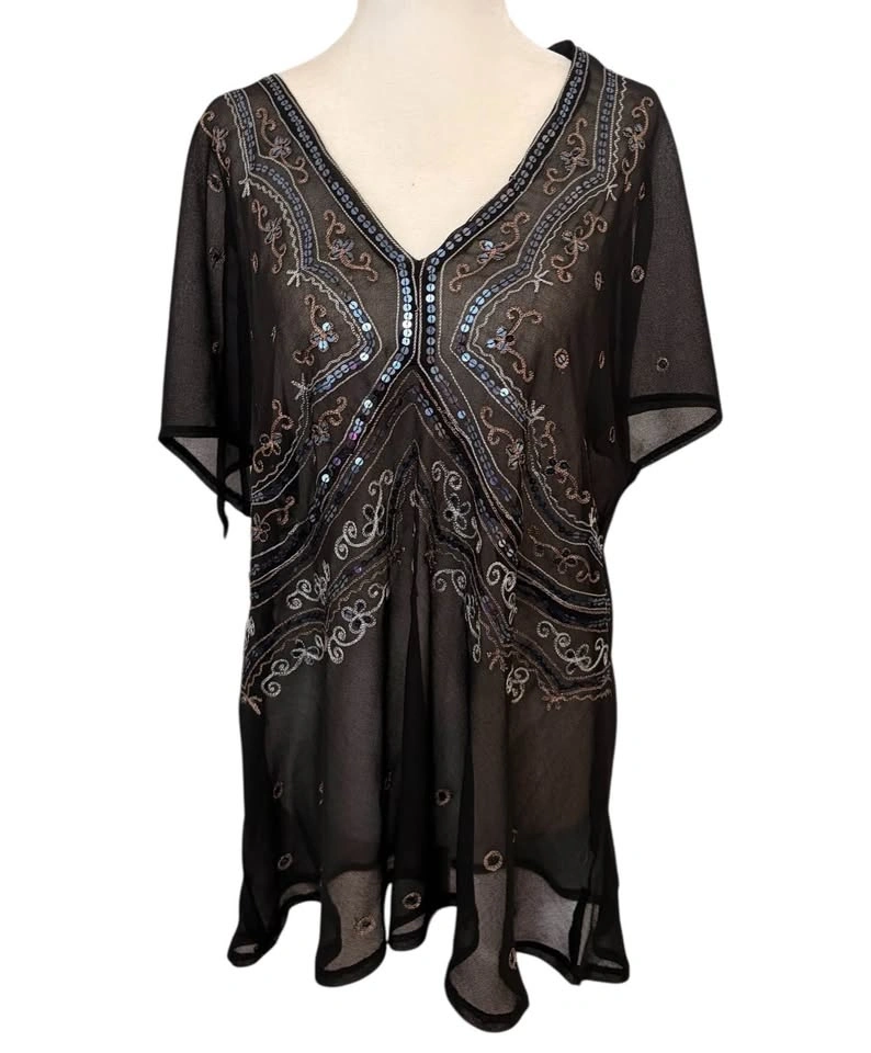 MXM Black Plus Size 2X Embellished Sheer Kaftan Tunic Top