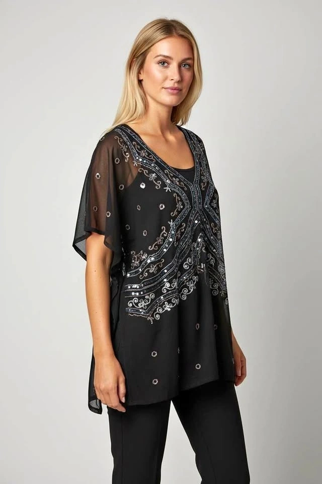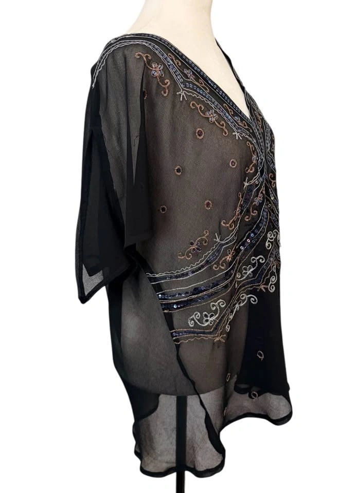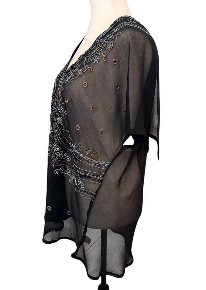 MXM Black Plus Size 2X Embellished Sheer Kaftan Tunic Top