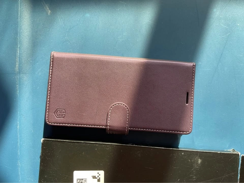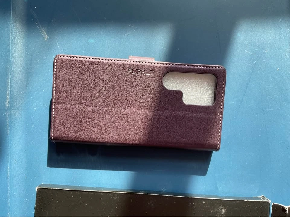 New FLIPALM wallet case for Samsung Galaxy S24 Ultra. Purple color. Has card slots inside. Still in original box, never used.