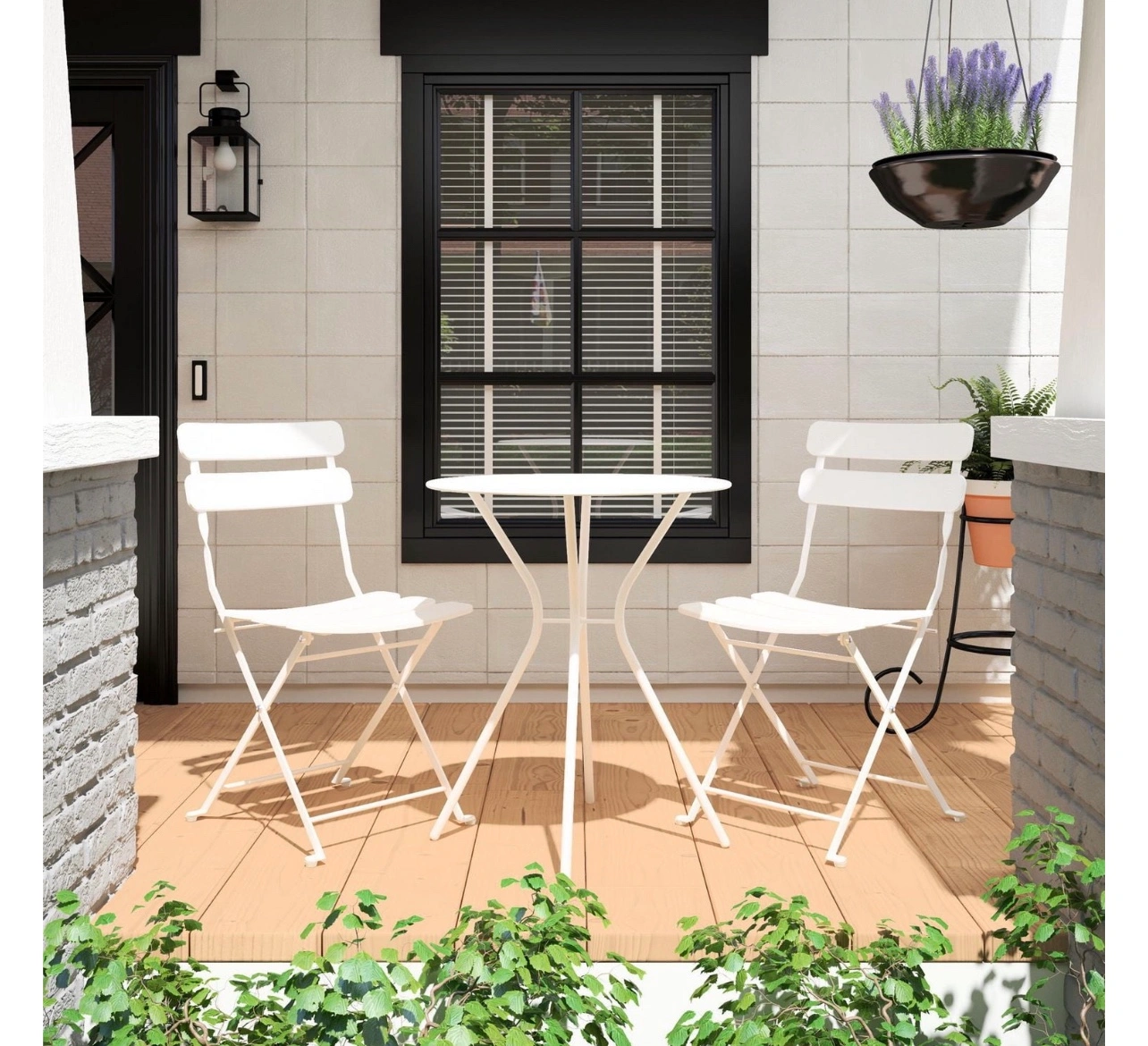 COSCO Outdoor Living’s modern 3 piece bistro patio set is the perfect choice for compact outdoor spaces. Its small size and timeless silhouette allows for placement on any balcony or terrace. Featuring two folding chairs, this set is easy to store in a garage when not in use. Constructed of steel and a durable outdoor navy powder coat, this bistro set is weather resistant for outdoor use. Enjoy this classic small space bistro for a quiet moment with a beverage or book.