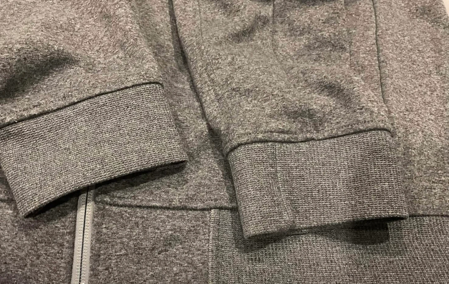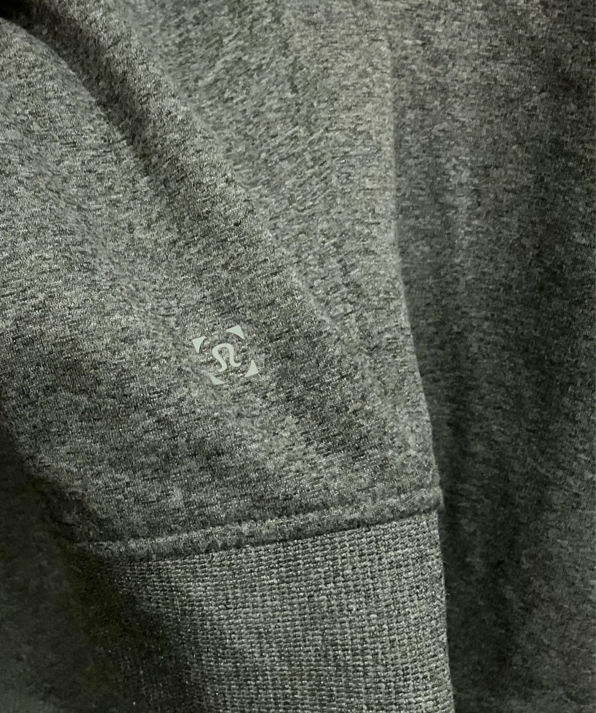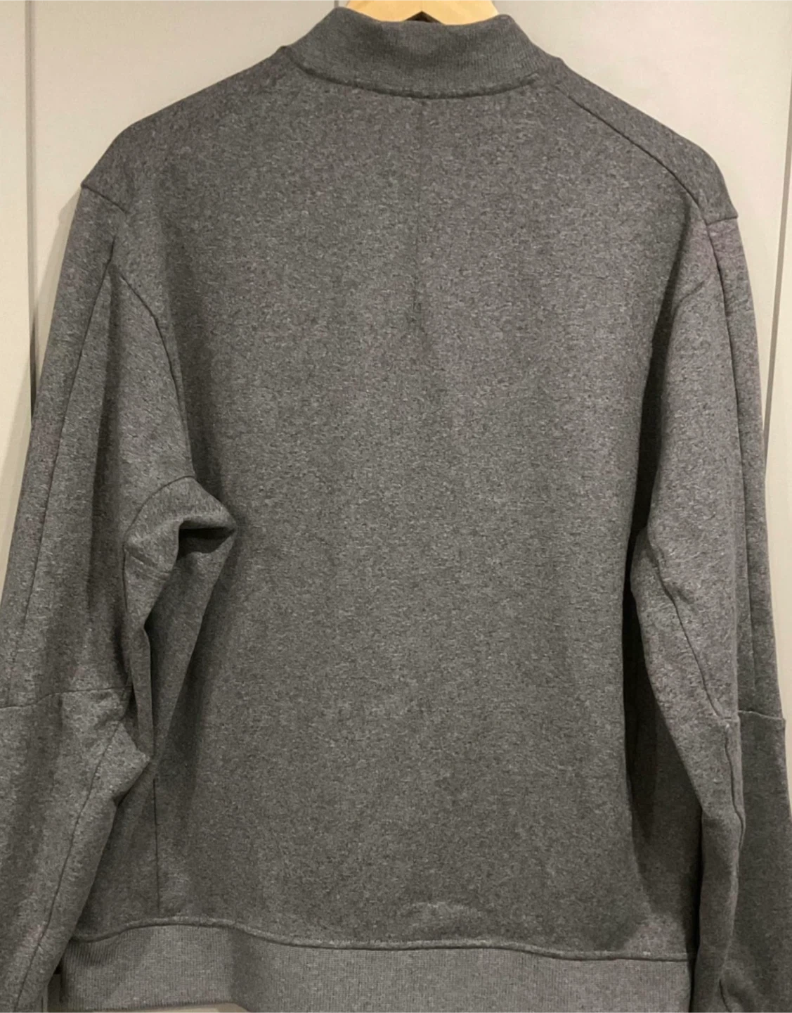 Lululemon men’s commute bomber jacket in heather grey. Size L. Full zip front with two hand pockets and one zippered chest pocket. Ribbed cuffs and hem.
