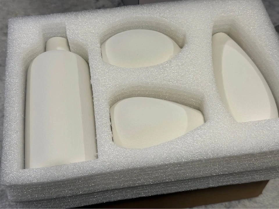 Modern set of 4 ceramic vases. These white vases have a cool speckled finish and come in different shapes. Perfect for fresh flowers or dried arrangements. Pick up from Etobicoke or downtown Union Station.