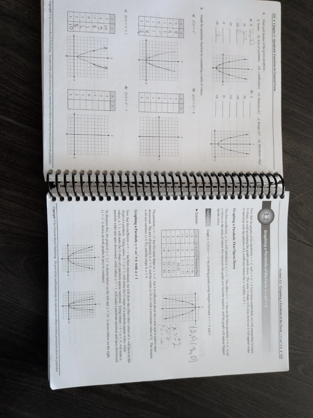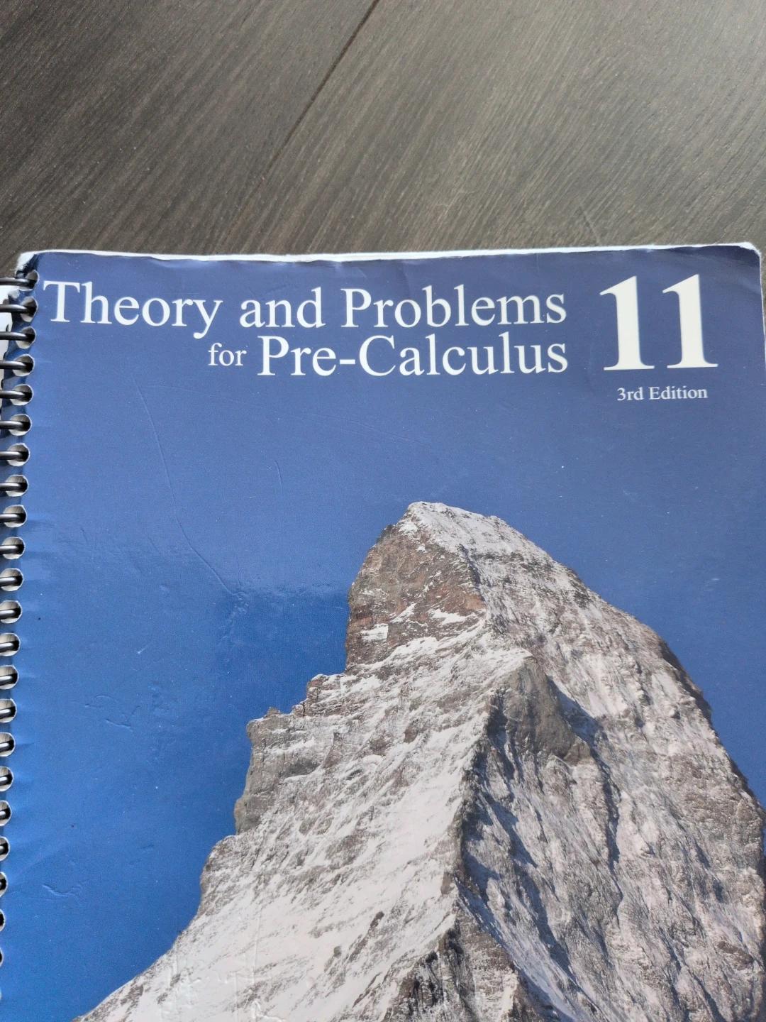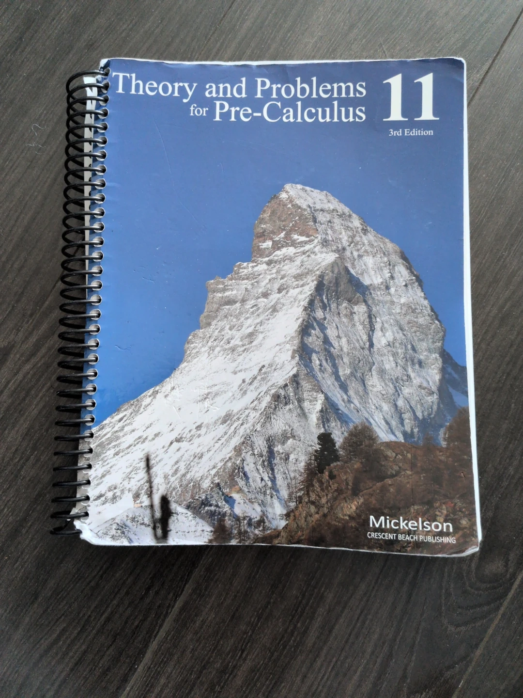 This is the 3rd edition of the 'Theory and Problems for Pre-Calculus 11' textbook by Mickelson. It covers algebraic expressions and graphing parabolas. The book is spiral-bound for easy use.