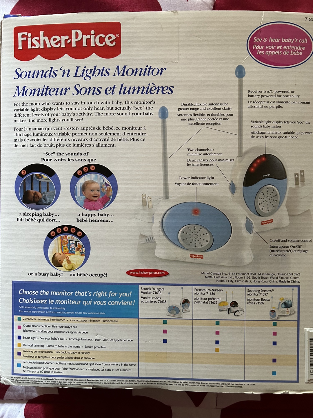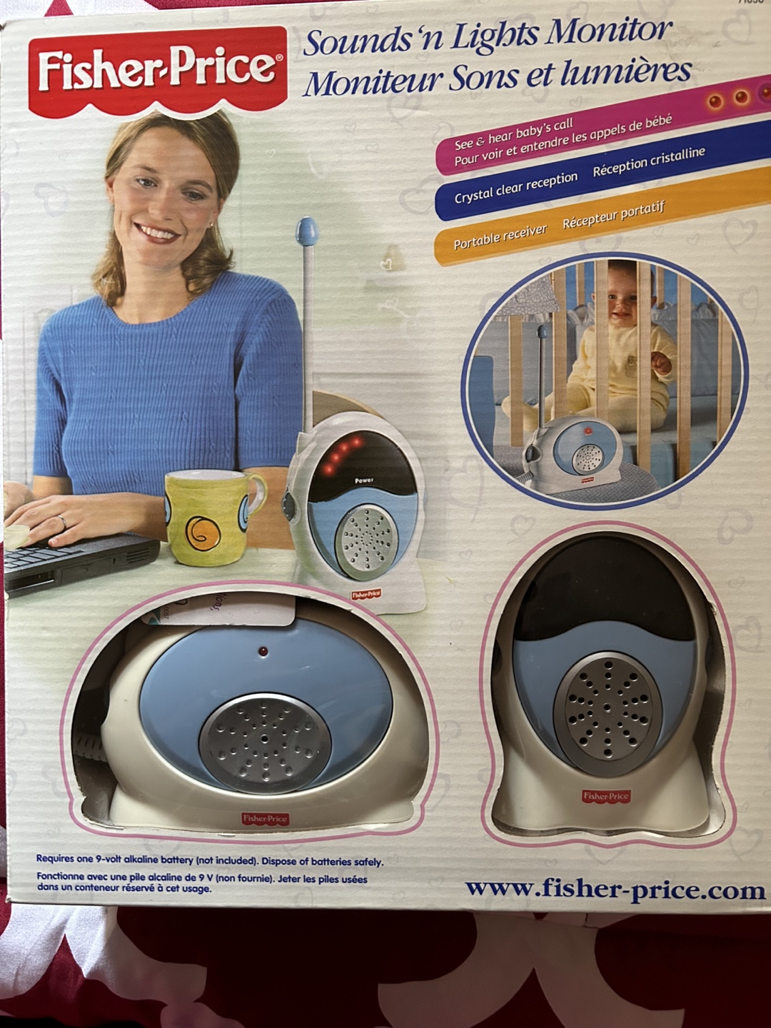 Selling a Fisher-Price Sounds 'n Lights Monitor. This monitor has two channels to minimize interference and a power indicator light. The receiver is powered by AC or battery. It also has a variable light display that lets you "see" the sounds baby makes